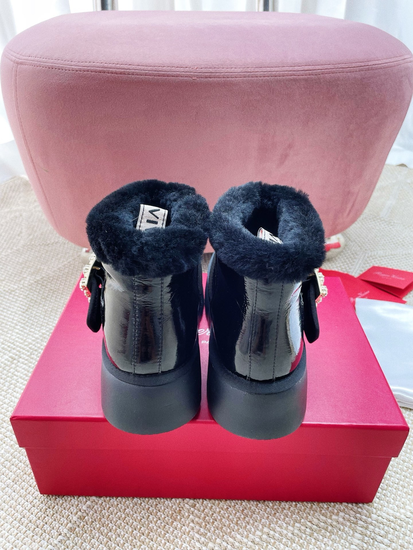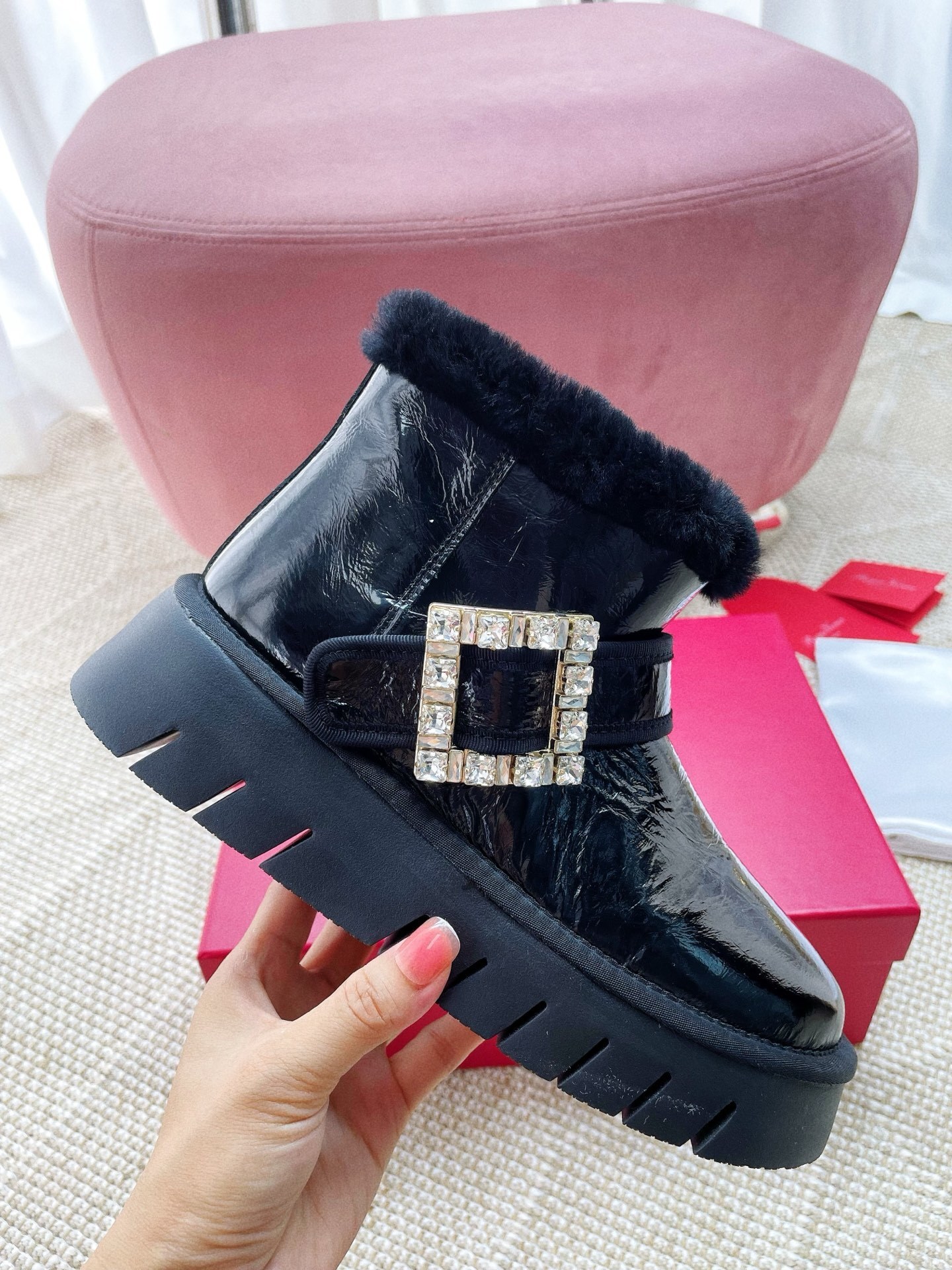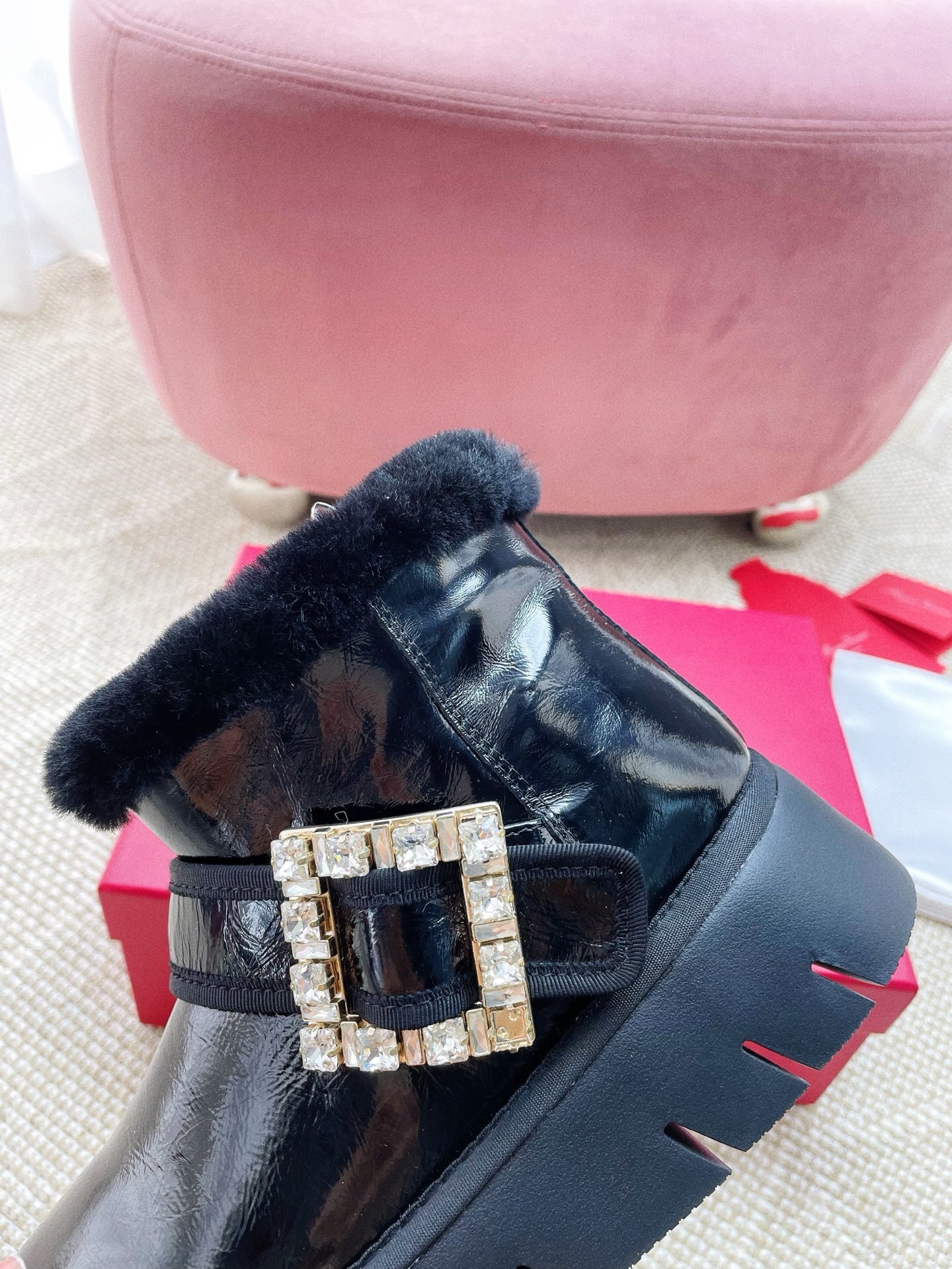 - Distinctive Features of Roger Vivier Black Patent Leather Crystal Buckle Ankle Boots