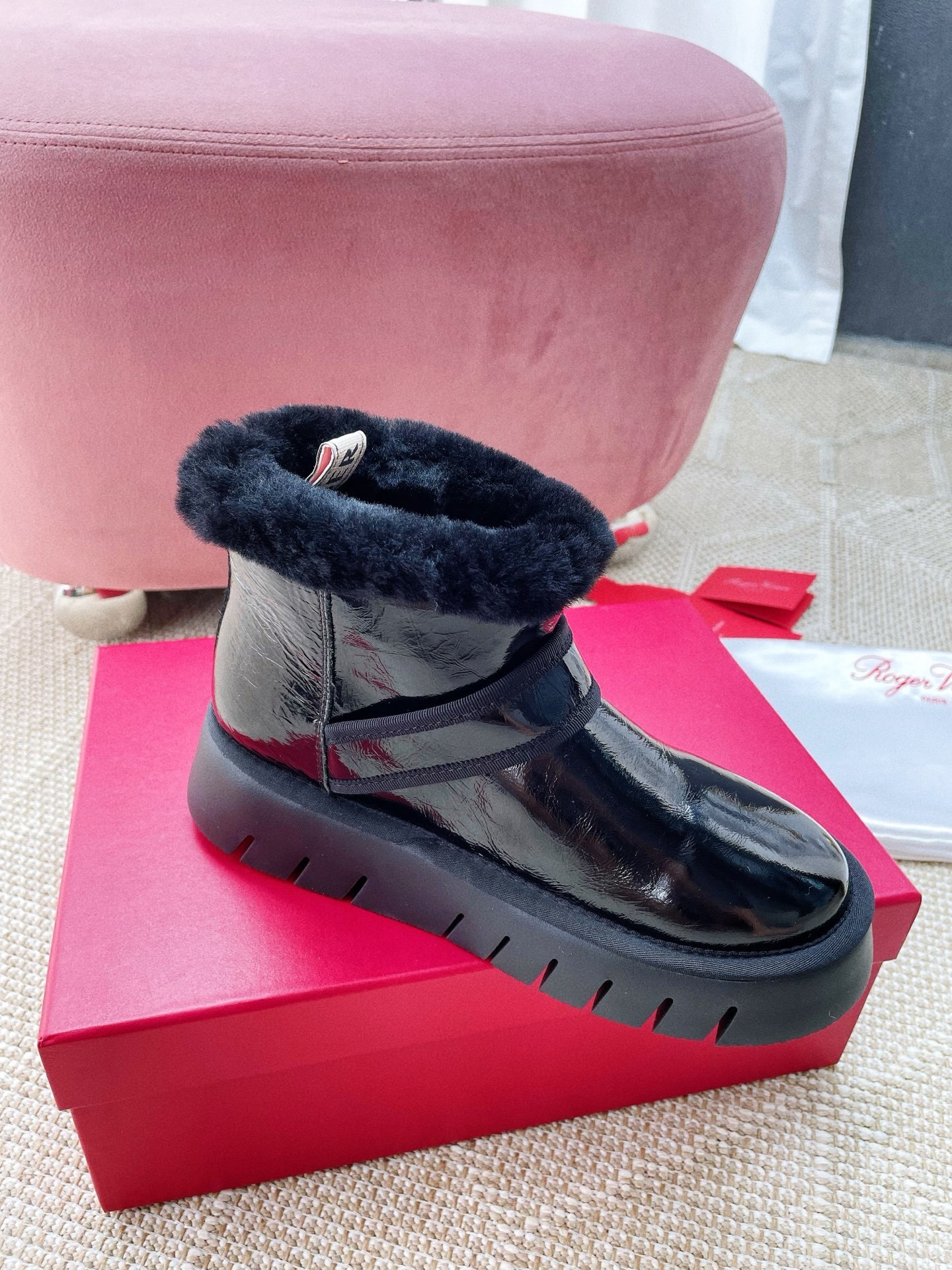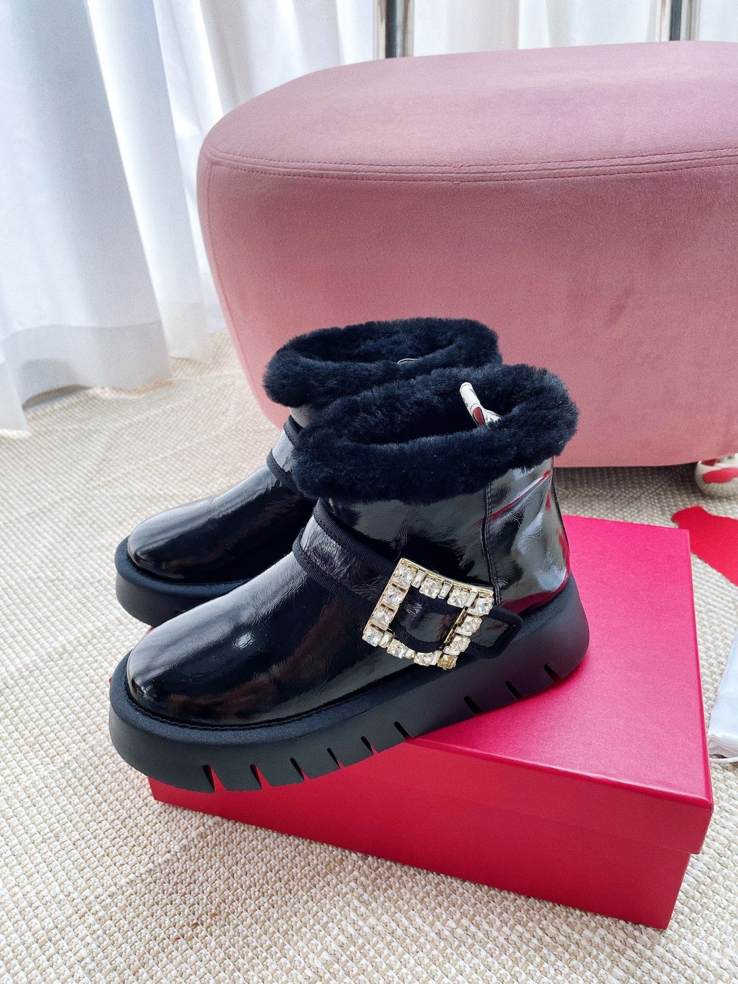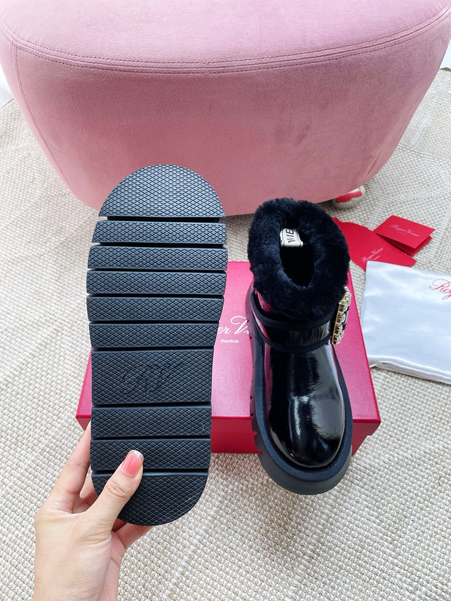 - Distinctive Features of Roger Vivier Black Patent Leather Crystal Buckle Ankle Boots