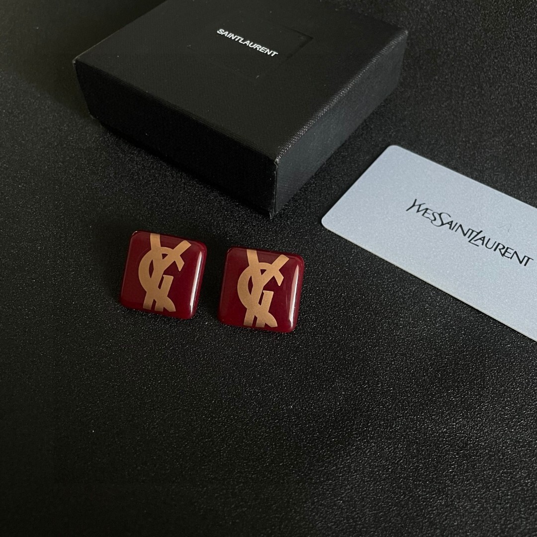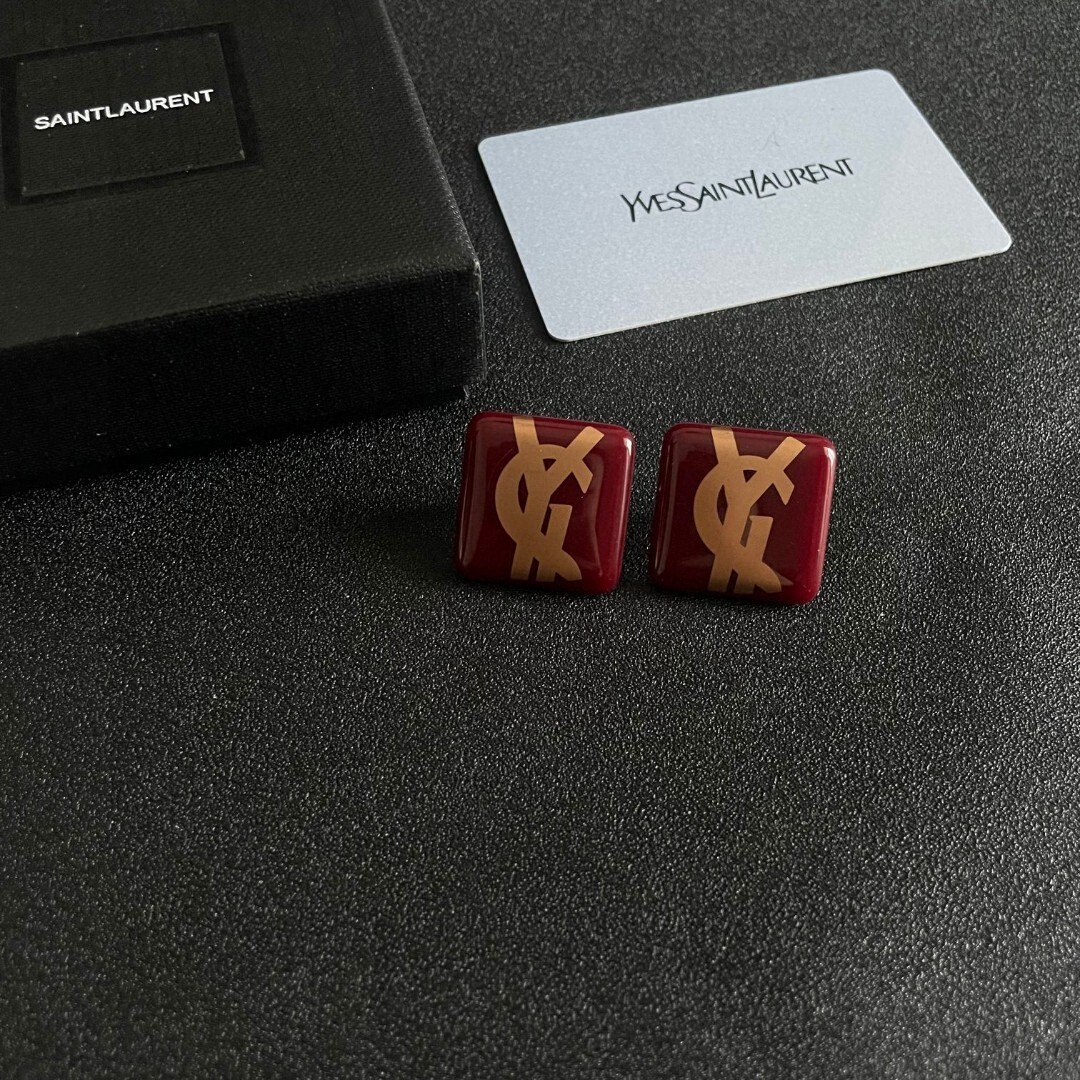 The design of these earrings is both classic and contemporary, making them a versatile addition to any jewelry collection. The square shape offers a modern twist on traditional earring styles, while the iconic YSL logo adds a touch of timeless elegance. The burgundy color is rich and sophisticated, making these earrings suitable for both daytime and evening wear. Whether you're dressing up for a formal event or adding a touch of luxury to your everyday look, these earrings are the perfect choice.