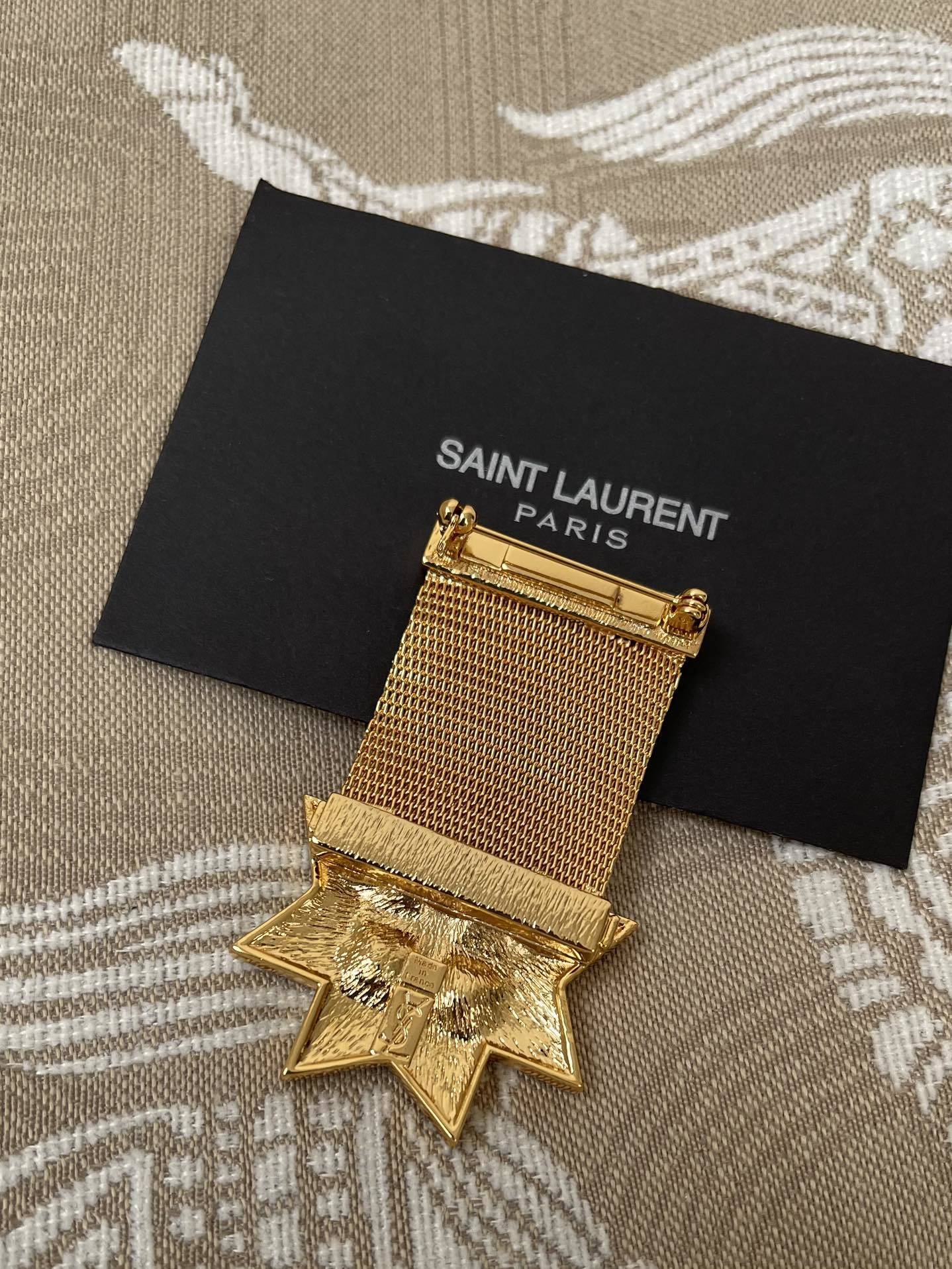 cassandre Saint Laurent Gold Brooch – Saint Laurent Gold Cassandre