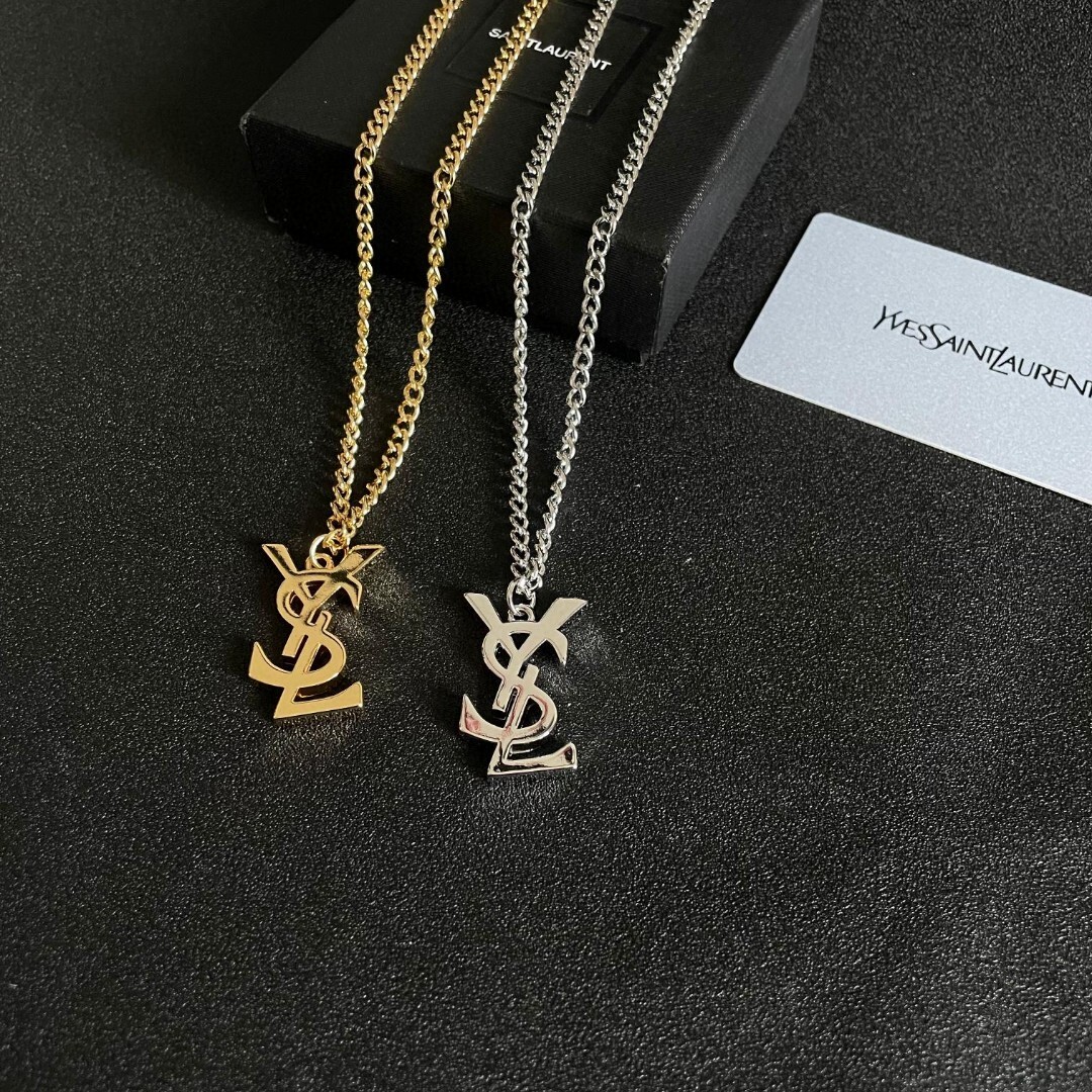 When wearing the Saint Laurent Gold YSL Necklace, avoid wearing it during activities that may cause it to come into contact with abrasive surfaces or excessive moisture. Remove the necklace before swimming, showering, or exercising to prevent damage. With proper care, your Saint Laurent Gold YSL Necklace will remain a cherished accessory for years to come.