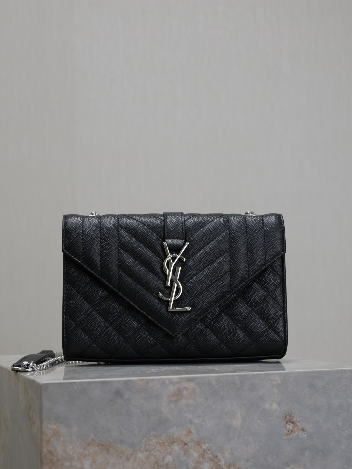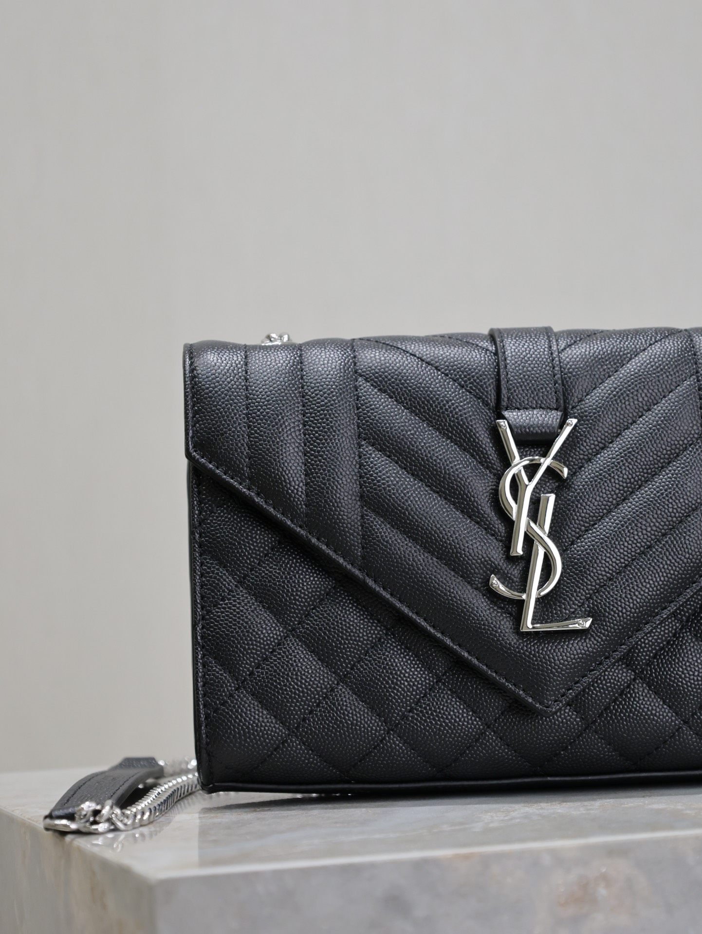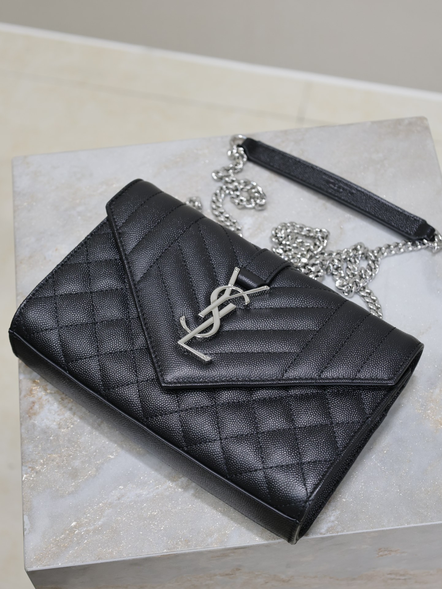 Introducing the Saint Laurent Black Grain de Poudre Chain Bag