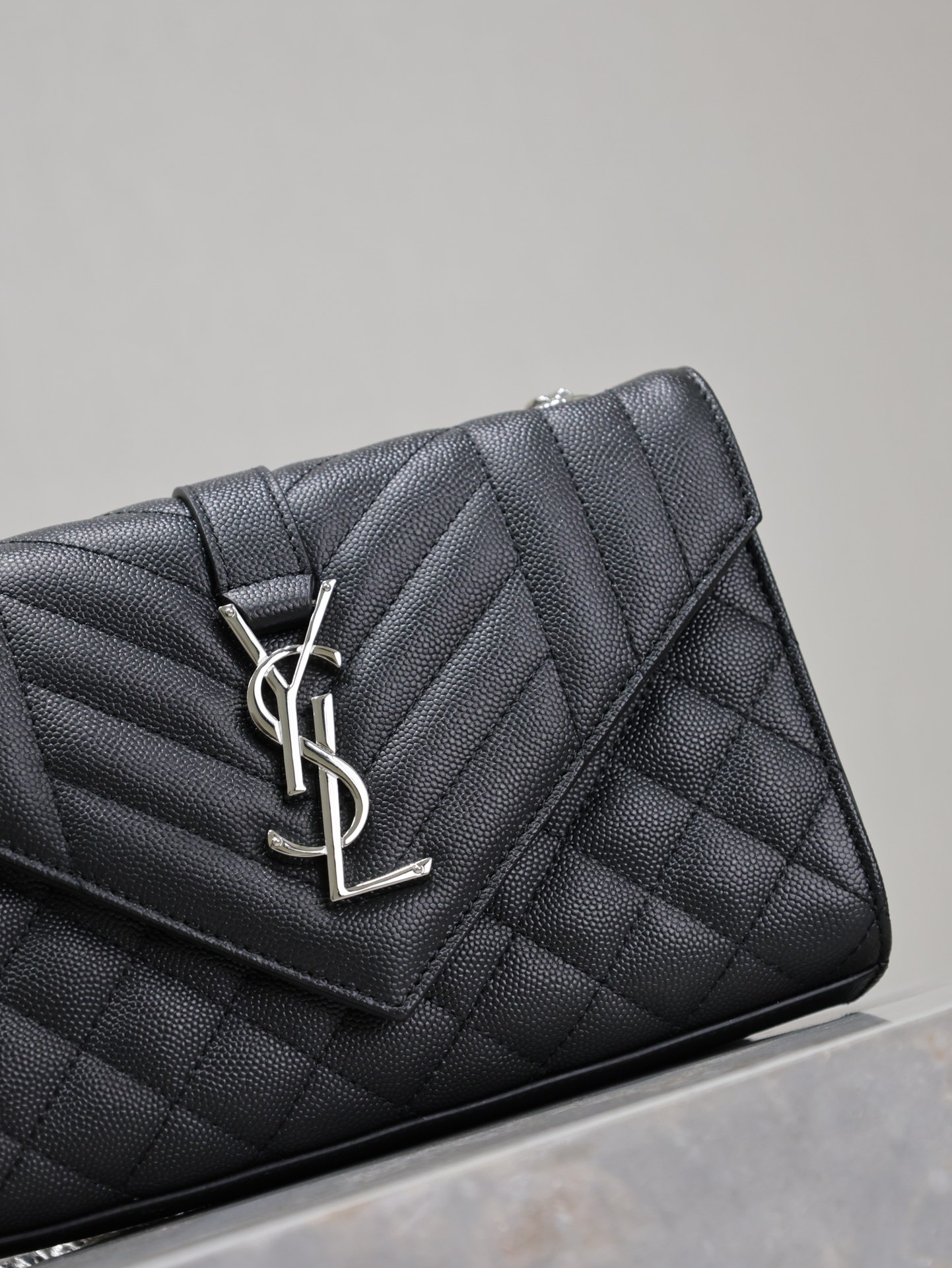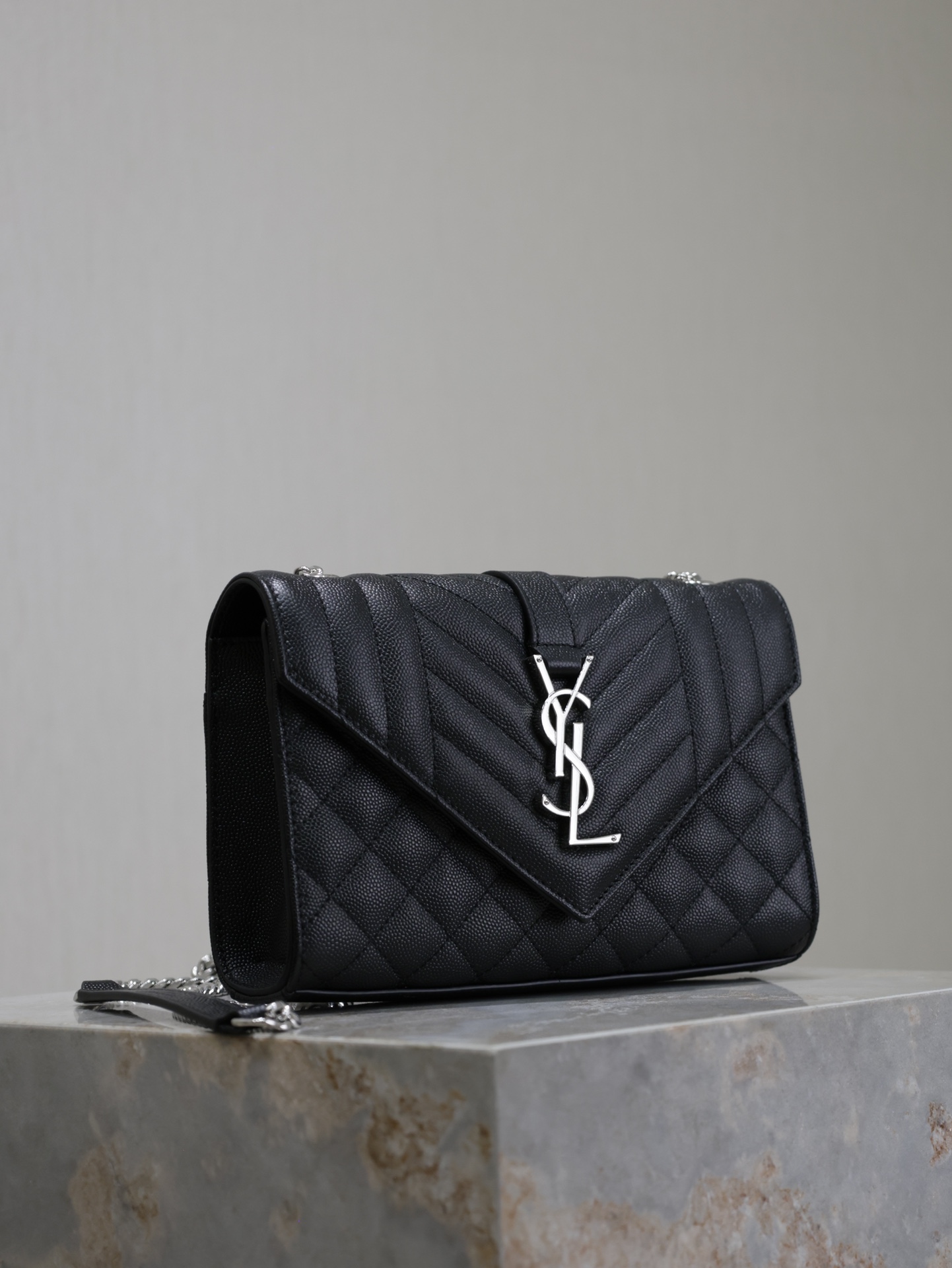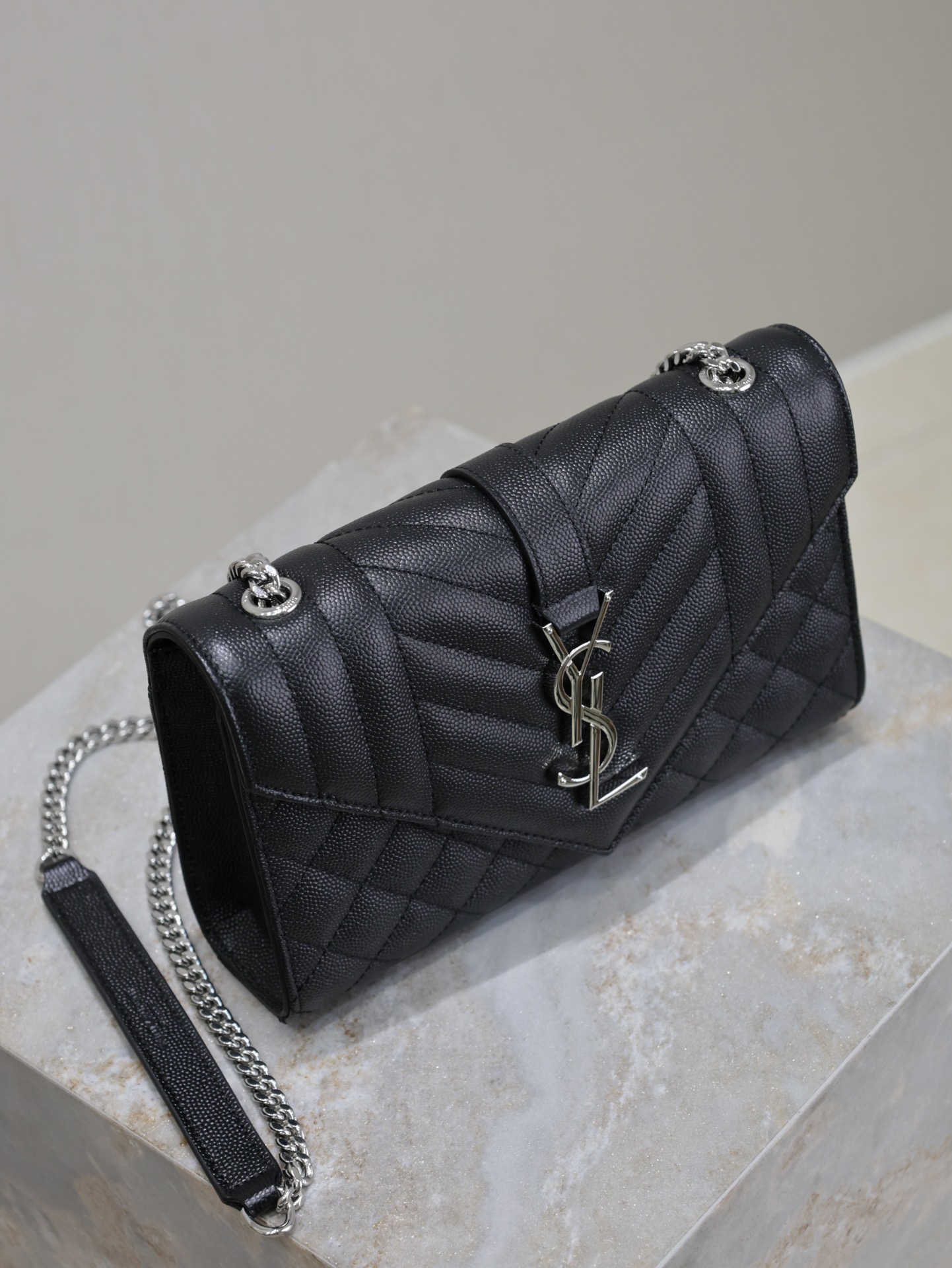 Introducing the Saint Laurent Black Grain de Poudre Chain Bag