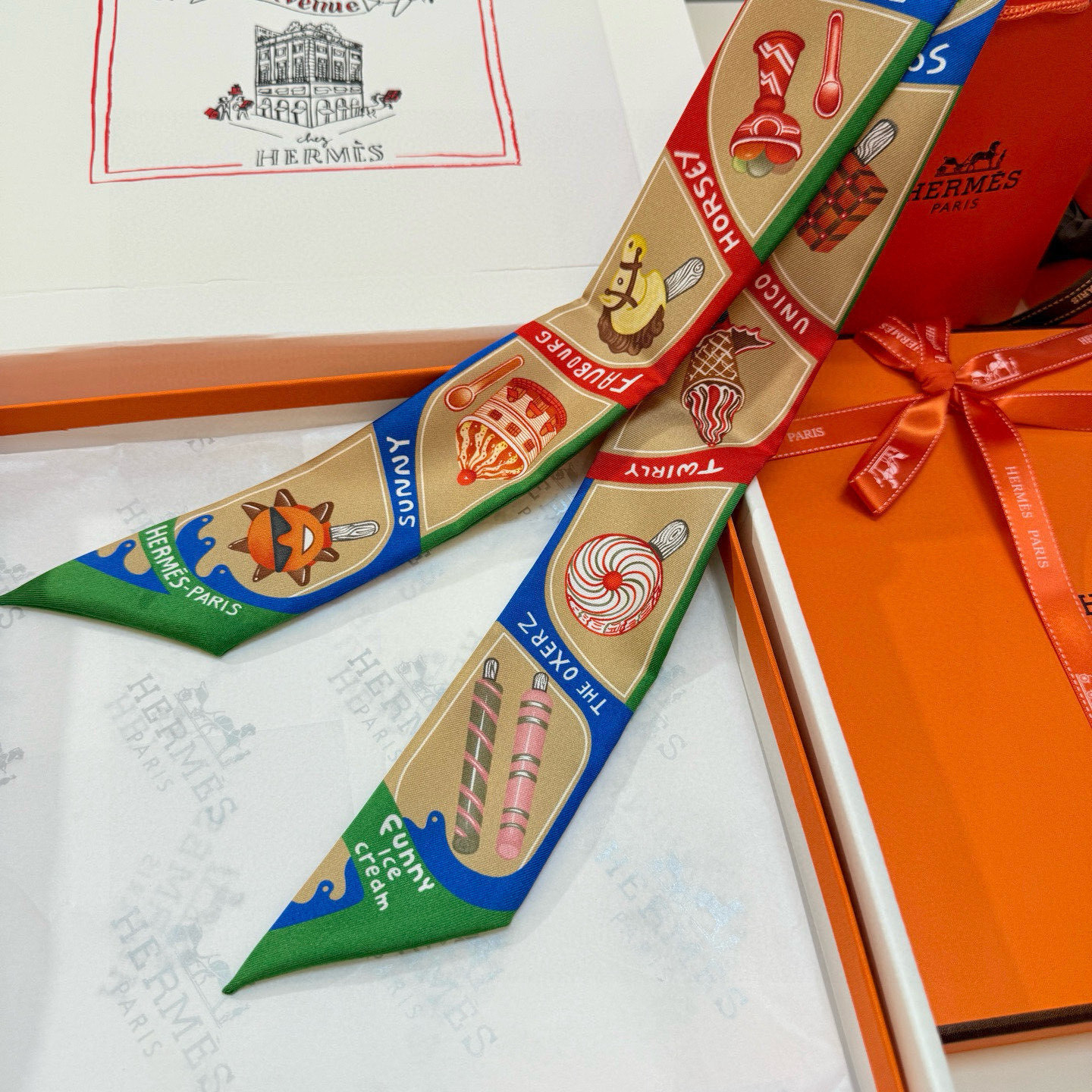 Introducing the Hermes Twilly Scarf - Funny Ice Cream Print