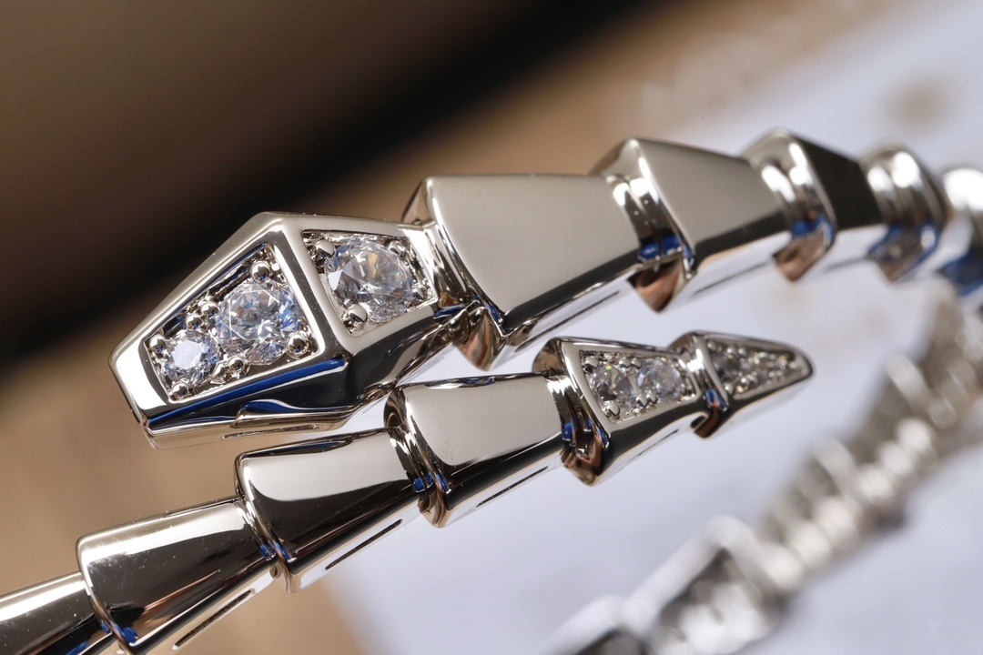 The Serpent Sparkle bracelet features a meticulously crafted snake design. Each scale is carefully shaped and polished to create a smooth, comfortable fit. The serpent's head and tail are adorned with dazzling accents, adding a touch of sparkle and sophistication.