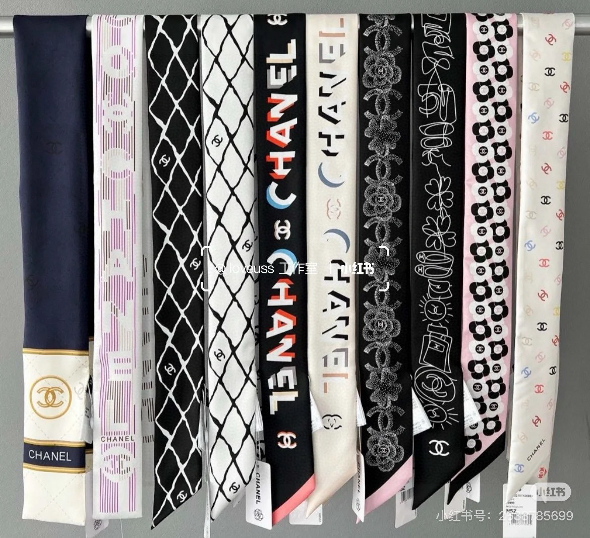 set Chanel Printed Silk Scarf - Elevate your style with the exquisite Chanel Printed Silk Scarf Set. This set features a variety of stunning scarves, each meticulously crafted from the finest silk and adorned with iconic Chanel designs. Perfect for adding a touch of luxury to your hair, handbag, or any ensemble, these scarves are a must-have accessory for fashion enthusiasts.