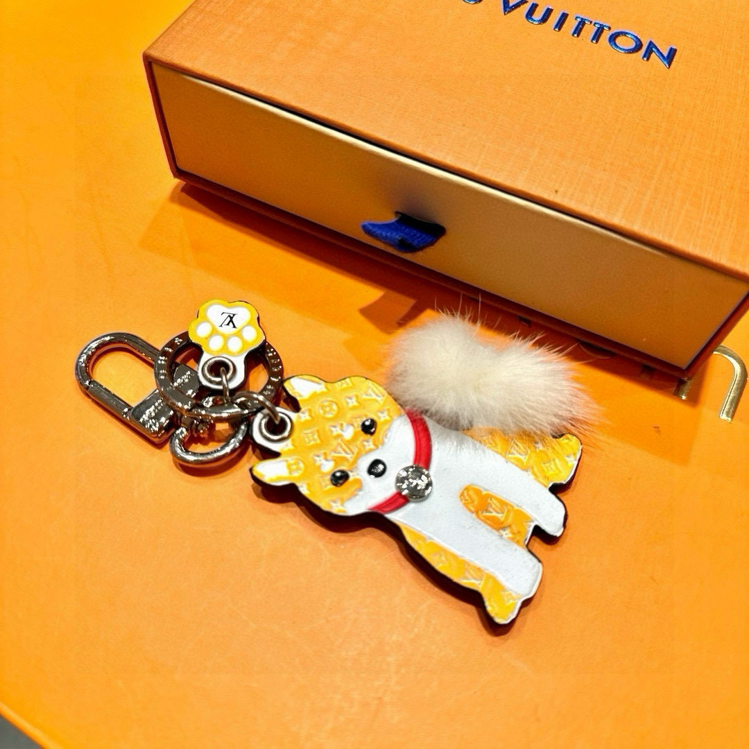 shiba Louis Vuitton Dog Keychain - Elevate your everyday style with the charming Louis Vuitton Dog Keychain, a delightful accessory that adds a touch of whimsy to your keys, handbag, or backpack. This adorable keychain features a Shiba Inu dog design, adorned with the iconic Louis Vuitton monogram print in a vibrant yellow hue. The fluffy fur tail adds a playful and luxurious touch, making it a standout piece that showcases your impeccable taste. The Louis Vuitton Dog Keychain - Shiba Inu Print, Fur Tail is a statement of elegance and fun, perfect for adding a pop of personality to your belongings.