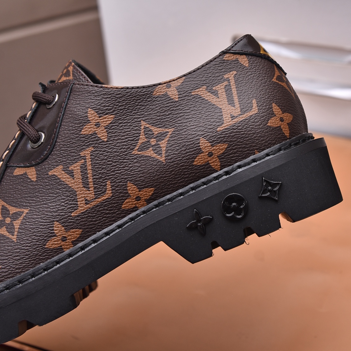 Detailed Features of the LV Brown Monogram Leather Oxford Shoes