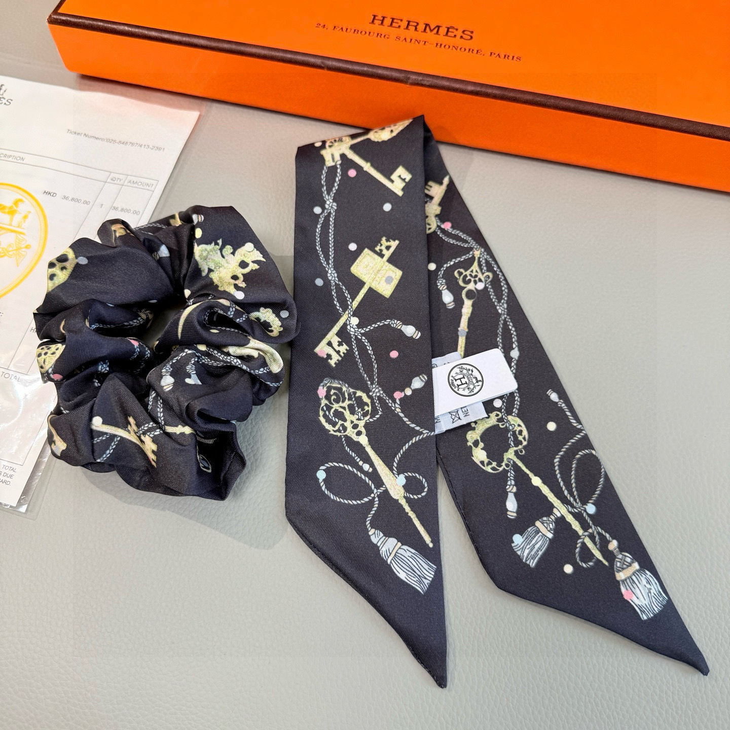 - Introducing the Hermès Key Print Silk Hair Scrunchie Set