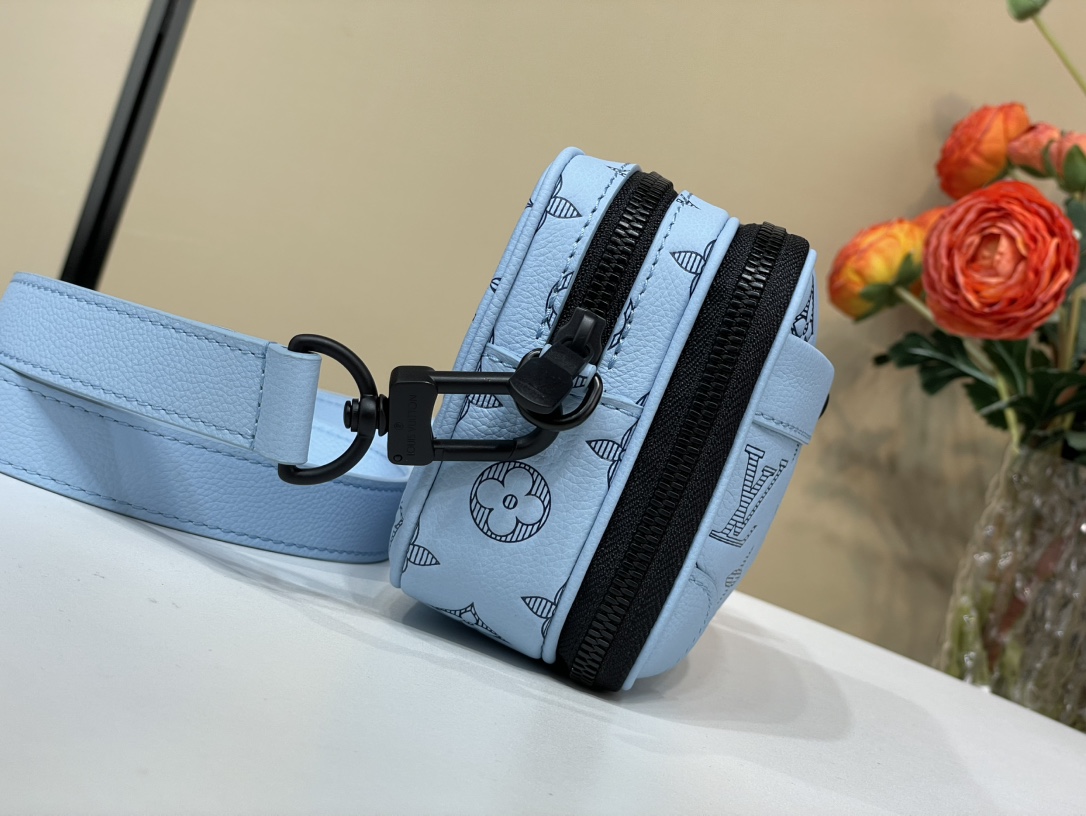 The sky-blue color palette offers a refreshing and modern take on the classic Louis Vuitton design. The black monogram print provides a striking contrast, making the bag visually appealing. The compact size is perfect for carrying your essentials, while the structured shape maintains its elegant form. The bag features a secure zip closure, ensuring that your belongings are safe and protected.