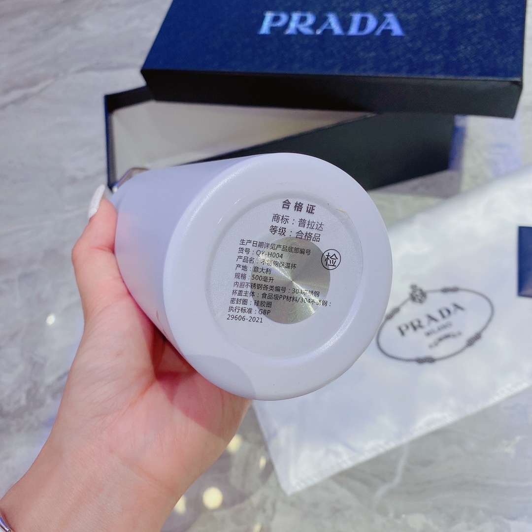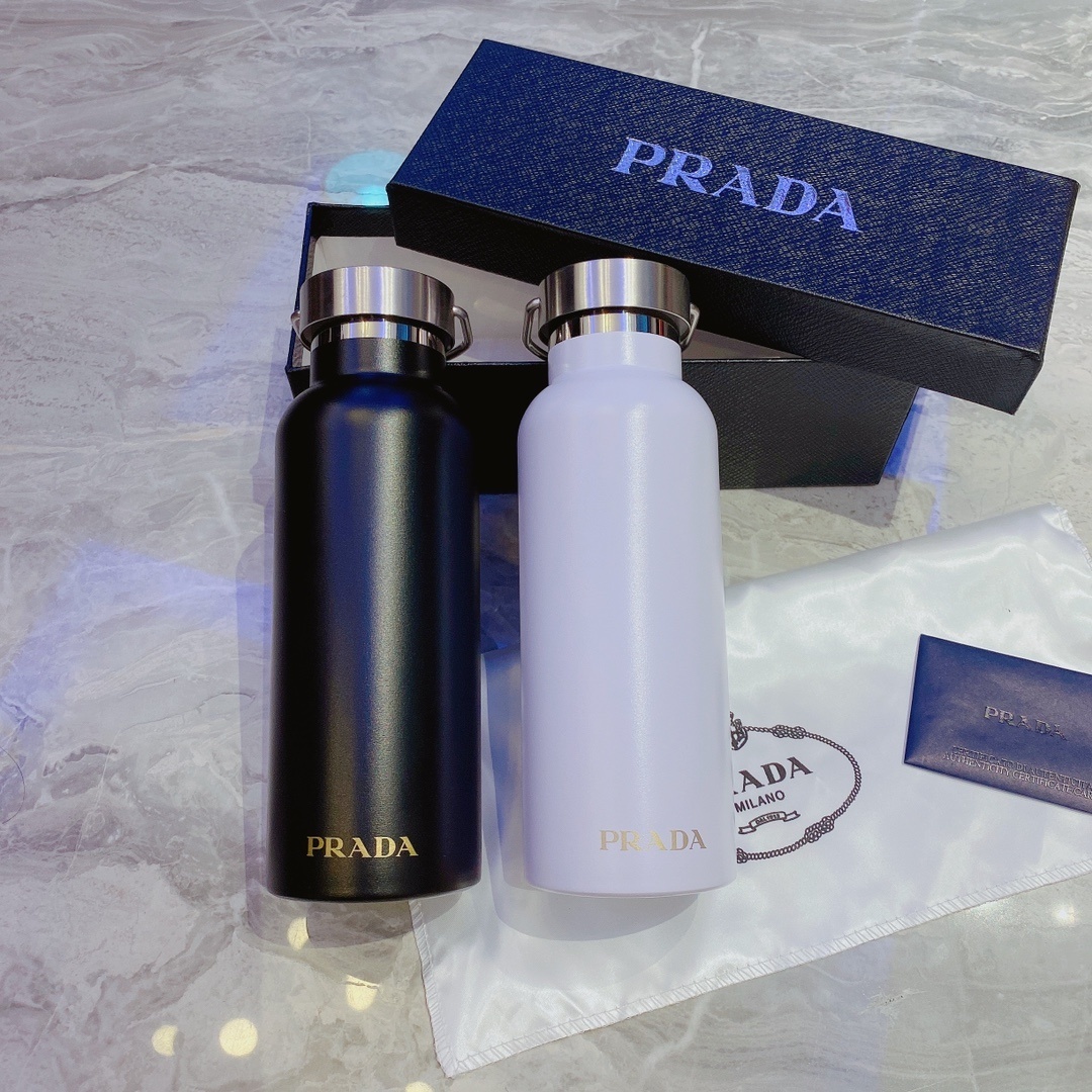 Featuring the iconic Prada logo, this water bottle is a symbol of luxury and style. The subtle branding adds a touch of exclusivity without being ostentatious. It's a perfect way to showcase your appreciation for high-end fashion while staying hydrated.