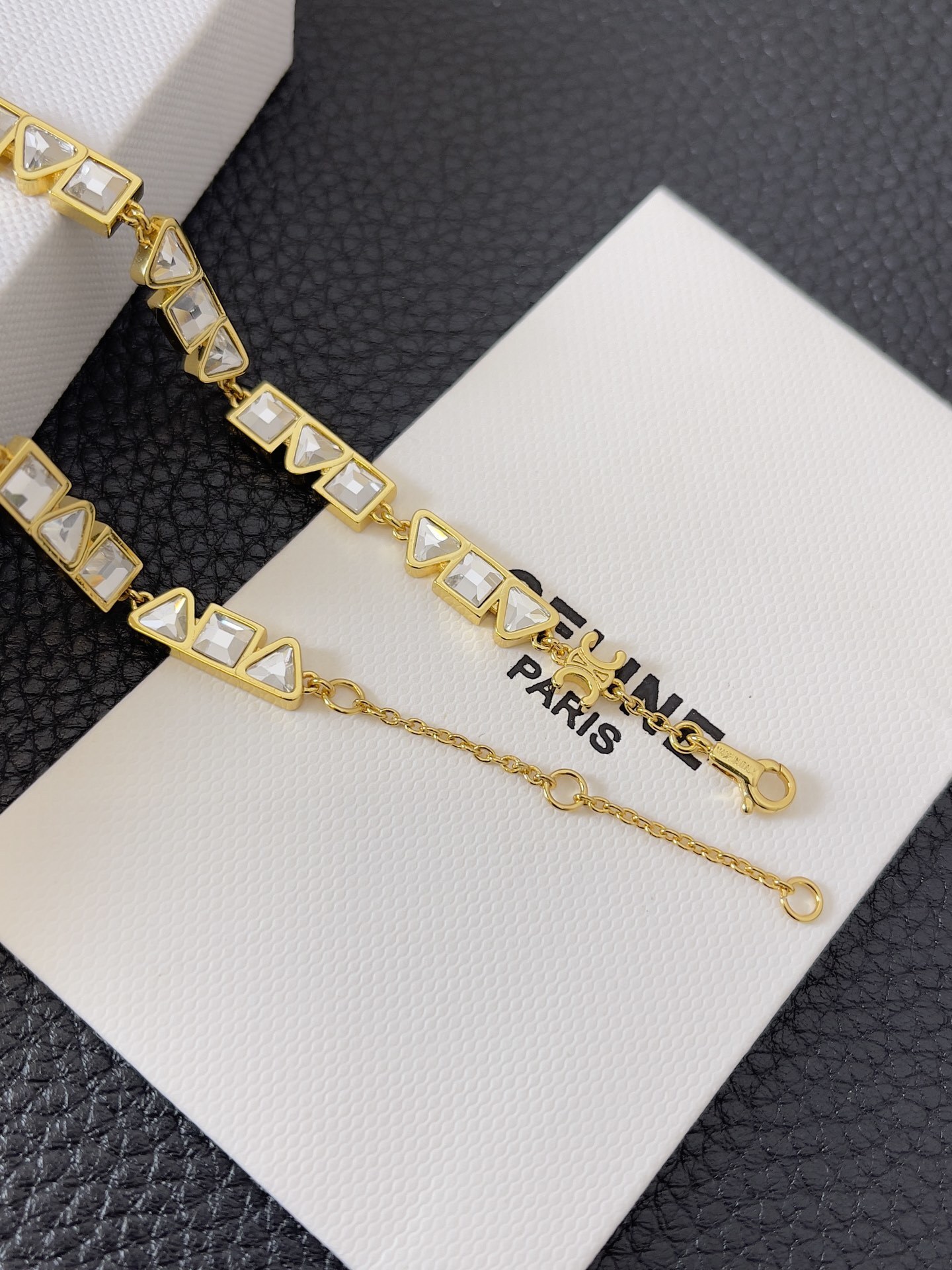 The Geometric Crystal Gold Necklace comes with an adjustable chain, allowing you to customize the length to suit your neckline and outfit. This versatility makes it easy to pair with a variety of tops and dresses. The secure clasp ensures that the necklace stays in place, providing peace of mind while you wear it. The adjustable length also makes it a thoughtful gift, as it can be easily tailored to fit different neck sizes.