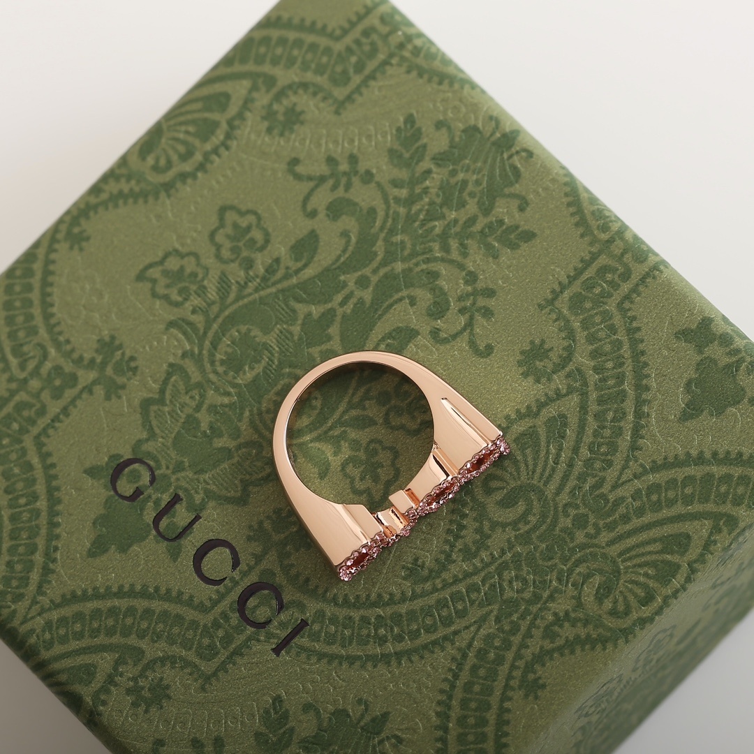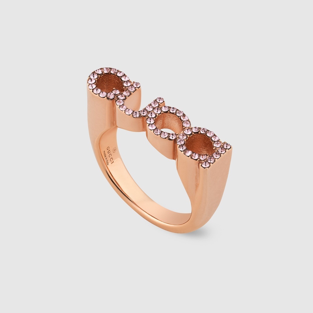 Introducing the Gucci Rose Gold Crystal Logo Ring