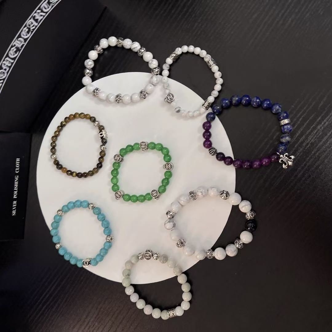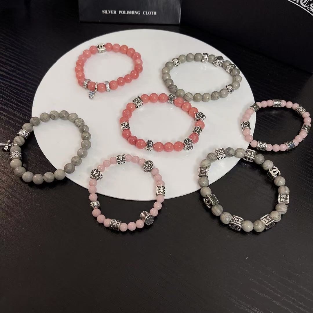 sterling Chrome Hearts Pink Beaded Bracelet - Elevate your wrist game with the exquisite Chrome Hearts Pink Beaded Bracelet. This stunning piece combines the iconic Chrome Hearts aesthetic with the delicate charm of pink beads, creating a unique and captivating accessory. Each bead is carefully selected for its quality and color, ensuring a harmonious blend of elegance and edge. The sterling silver accents add a touch of luxury and durability, making this bracelet a timeless addition to your jewelry collection. This bracelet is more than just an accessory; it's a statement of individuality and refined taste. The combination of the soft pink hue with the bold sterling silver details creates a striking contrast that is sure to catch the eye. Whether you're dressing up for a special occasion or adding a touch of flair to your everyday look, the Chrome Hearts Pink Beaded Bracelet is the perfect choice.