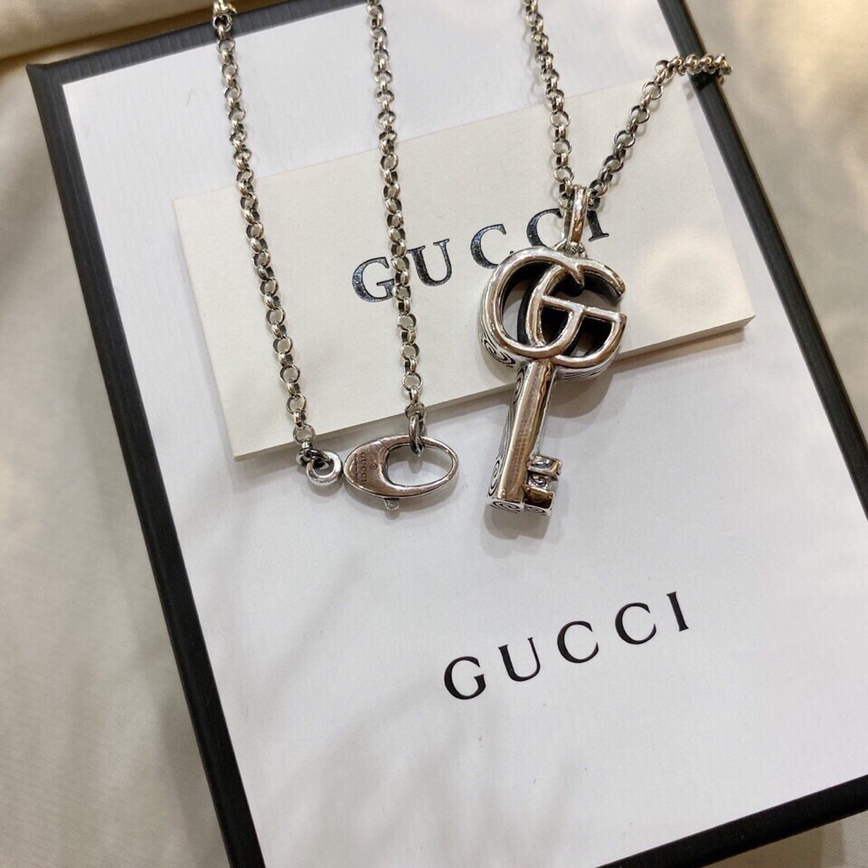 sterling Gucci Silver Key Necklace - Unlock a world of style and sophistication with the Gucci Sterling Silver Key Pendant Necklace. This exquisite piece combines the iconic Gucci design with the timeless appeal of sterling silver, creating a statement accessory that will elevate any outfit. The intricate key pendant, adorned with the signature GG logo, adds a touch of luxury and exclusivity to your look. Whether you're dressing up for a special occasion or adding a touch of elegance to your everyday style, this necklace is the perfect choice. The **Gucci Sterling Silver Key Pendant Necklace** is more than just a piece of jewelry; it's a symbol of refined taste and impeccable craftsmanship.