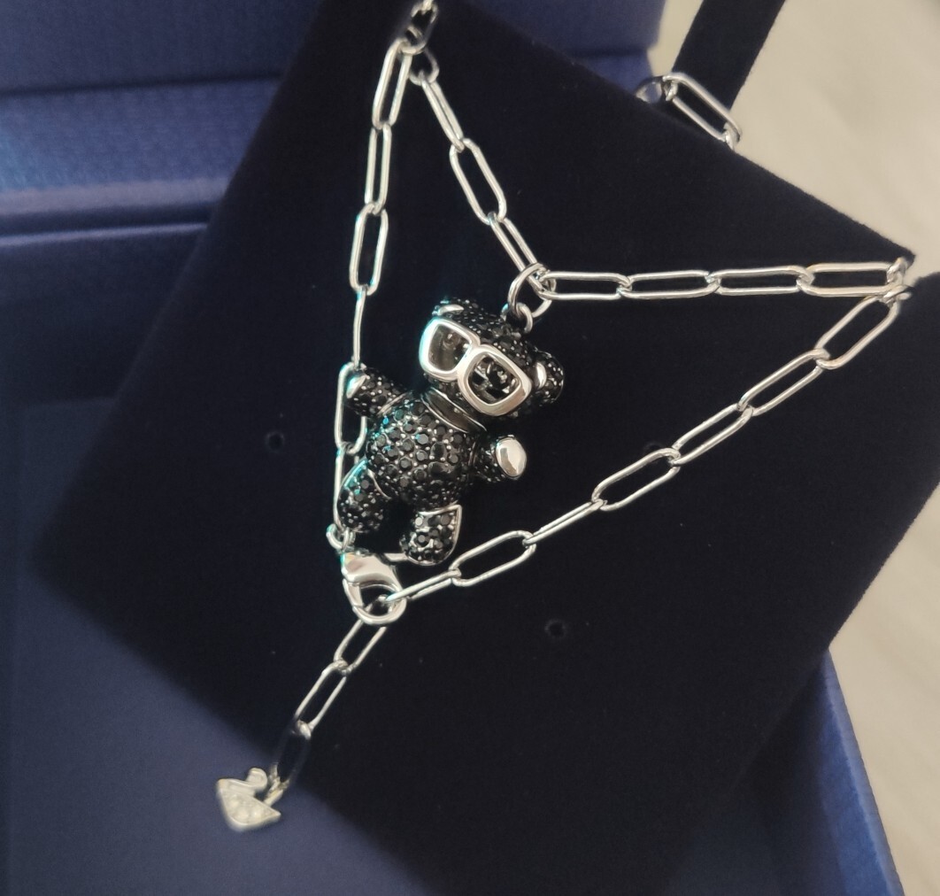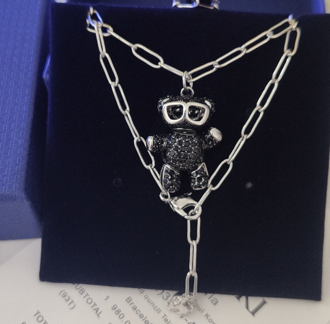 This necklace is not just a piece of jewelry; it's a statement of style and personality. The black crystals catch the light beautifully, creating a stunning sparkle that will draw attention. Whether you're looking for a unique gift for a loved one or a special treat for yourself, the Swarovski Black Crystal Teddy Bear Necklace is an excellent choice. Its timeless design and exceptional craftsmanship make it a standout piece that you'll love to wear.
