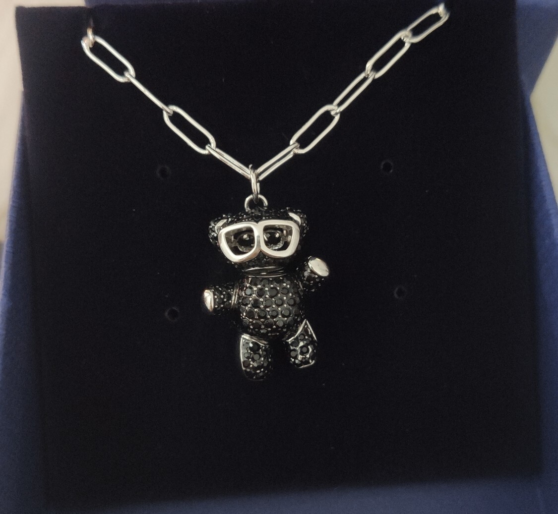 - Introducing the Swarovski Black Crystal Teddy Bear Necklace