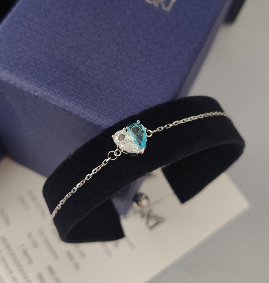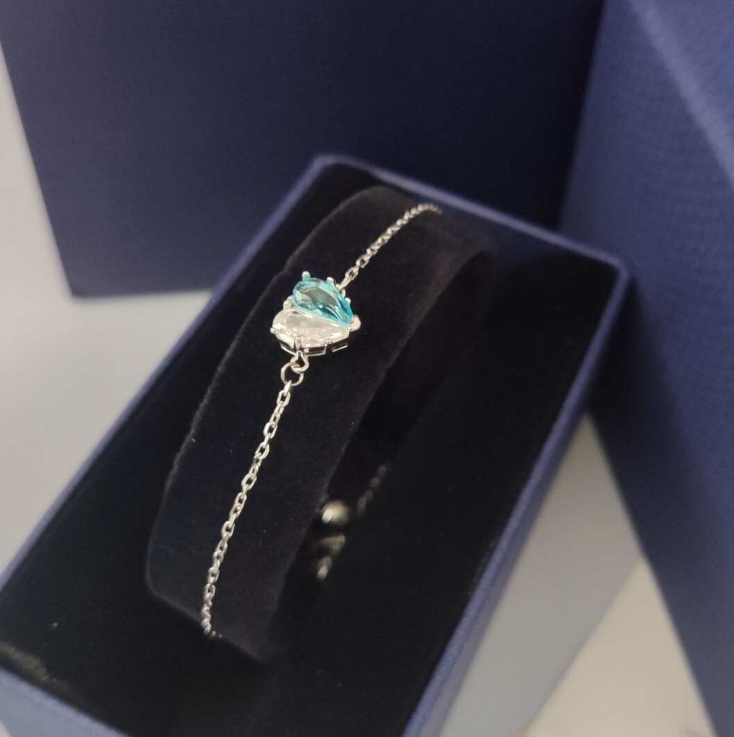 When not wearing the bracelet, keep it separate from other jewelry to prevent tangling or scratching. By following these simple care instructions, you can ensure that your Swarovski Silver Heart Blue Crystal Bracelet remains a beautiful and cherished piece for many years to come. Proper storage and cleaning will help preserve its sparkle and elegance.
