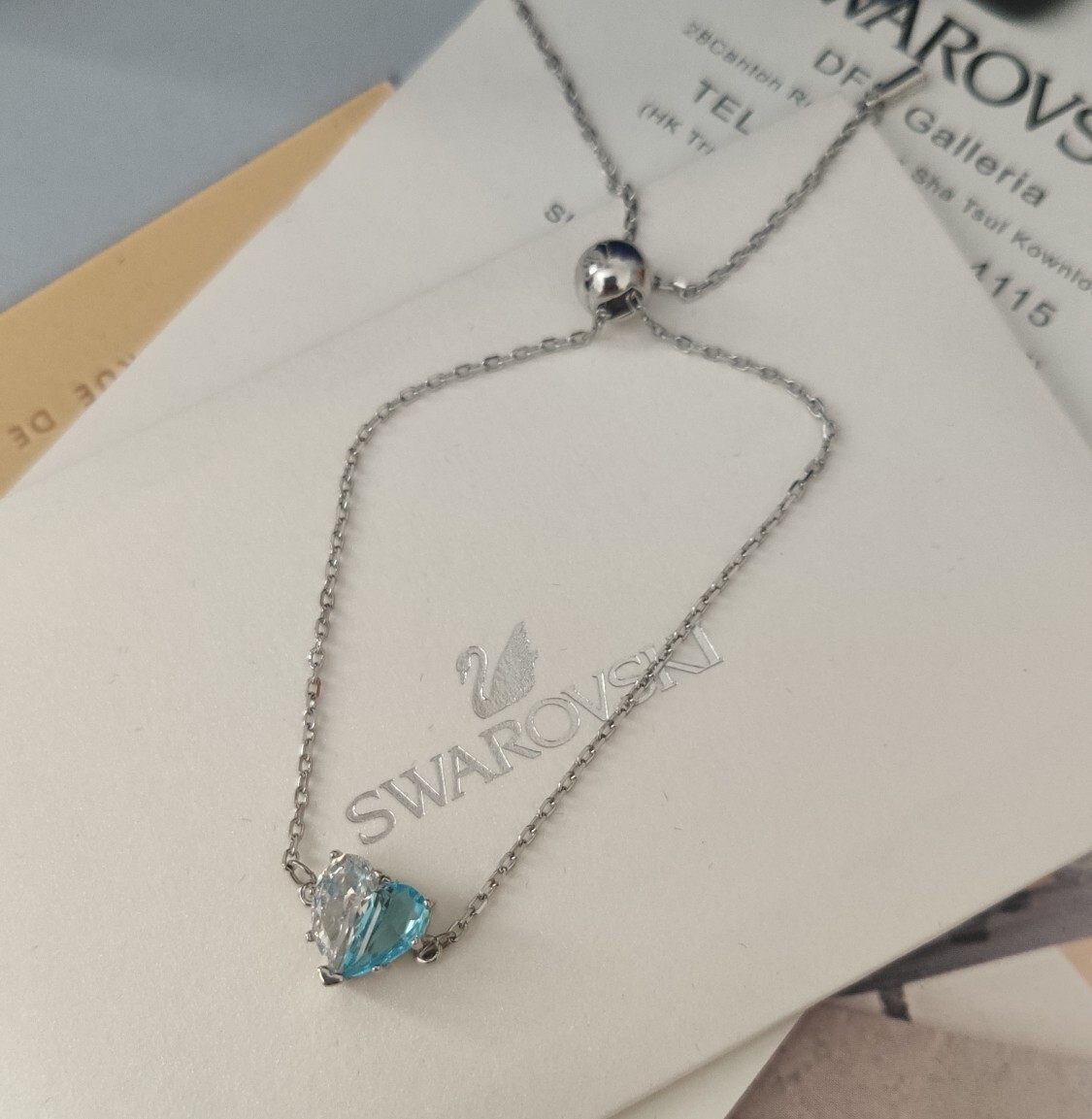 - Instructions for Caring for Your Swarovski Silver Heart Blue Crystal Bracelet