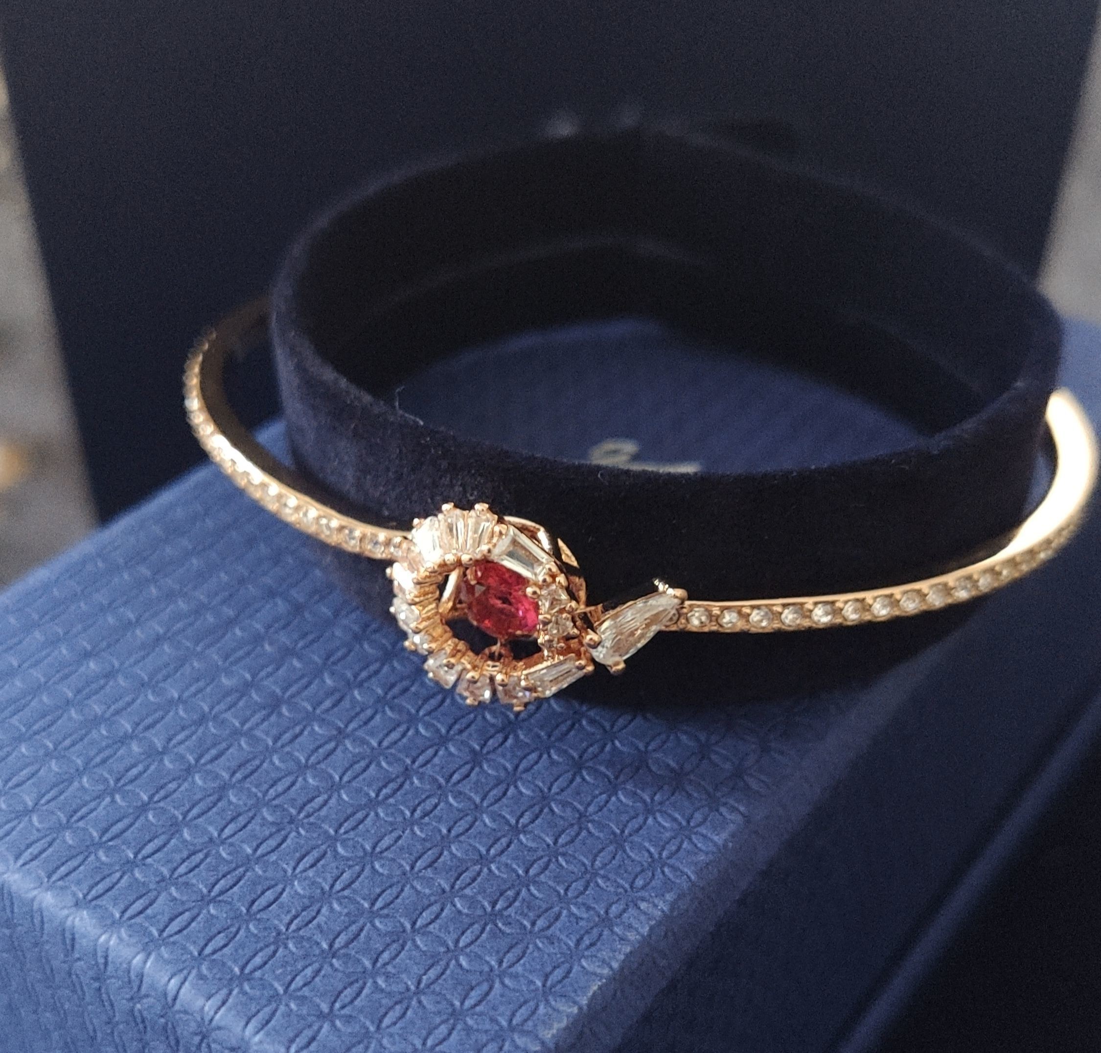 The Heart of Fire Bracelet features a captivating design centered around a vibrant red heart. The heart is meticulously crafted and surrounded by a dazzling halo of sparkling crystals, creating a breathtaking display of light and color. The bracelet itself is made from high-quality materials, ensuring durability and lasting beauty. The rose-gold tone adds a touch of warmth and sophistication, making it the perfect complement to any skin tone.