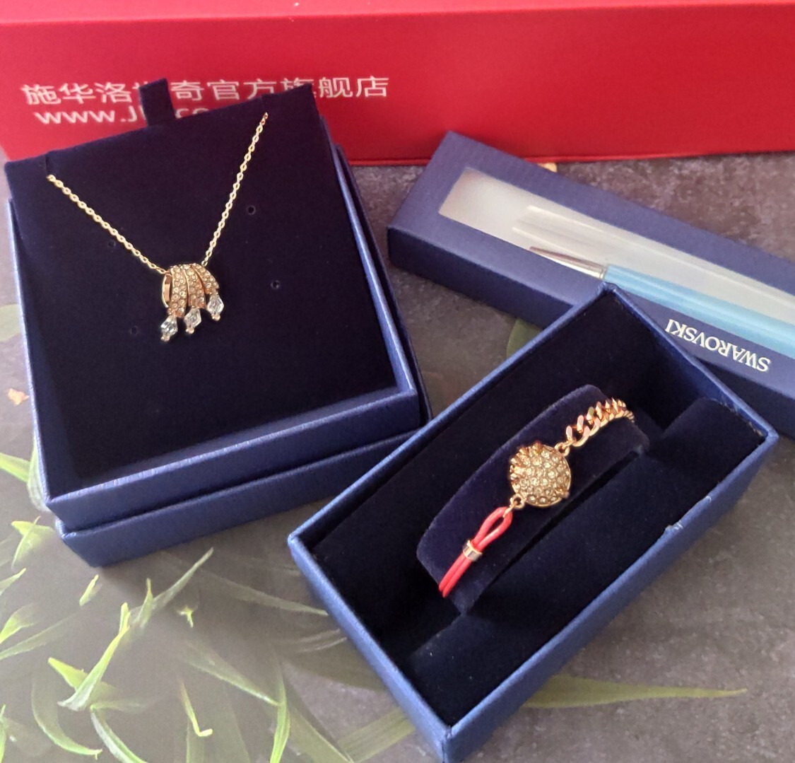 To keep your Swarovski Gold Cascade Necklace & Bracelet Set looking its best, proper care is essential. Here are some tips to help you maintain the beauty and longevity of your jewelry: