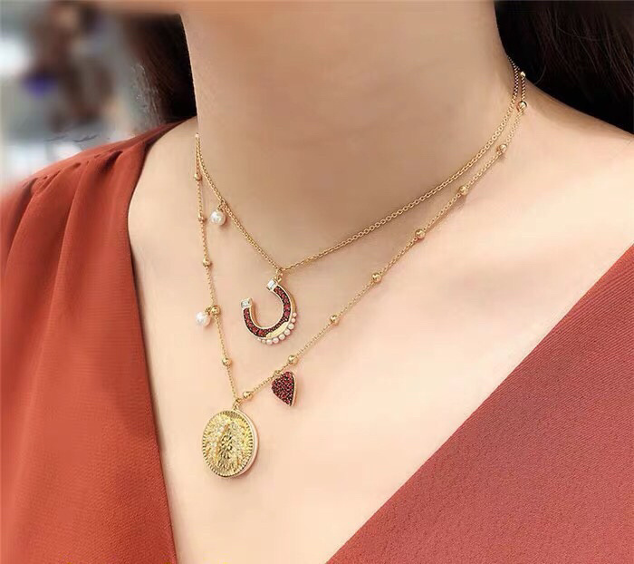 A: Absolutely! The Swarovski Gold Horseshoe Red Crystal Necklace can be easily layered with other necklaces to create a personalized and trendy look.