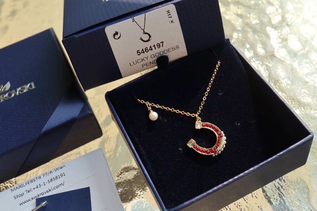 There are many reasons to choose the Swarovski Gold Horseshoe Red Crystal Necklace. First and foremost, it's a stunning piece of jewelry that will add a touch of glamour to any outfit. The horseshoe design symbolizes luck and good fortune, making it a meaningful gift for yourself or a loved one. The high-quality materials and meticulous craftsmanship ensure that the necklace is both beautiful and durable. Plus, the versatile design makes it easy to style with a wide range of outfits. Whether you're looking for a special occasion piece or an everyday accessory, the Swarovski Gold Horseshoe Red Crystal Necklace is the perfect choice.