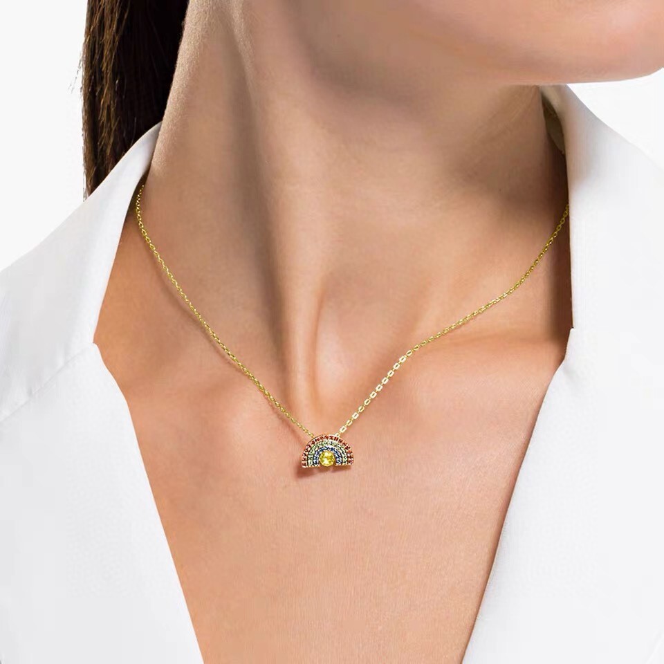 In addition to its aesthetic appeal, the Swarovski Gold Rainbow Crystal Pendant also carries a deeper significance. The rainbow is a symbol of hope, positivity, and new beginnings, making this necklace a powerful reminder to stay optimistic and embrace life's opportunities. Wearing the pendant can serve as a daily affirmation of your inner strength and resilience, inspiring you to overcome challenges and pursue your dreams. The Swarovski Gold Rainbow Crystal Pendant is more than just a piece of jewelry; it's a symbol of your unique personality and your unwavering spirit.