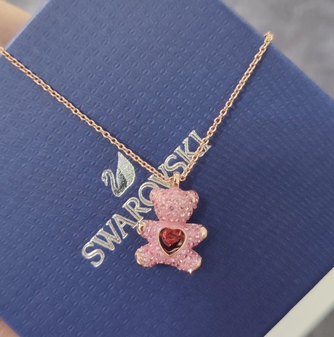 The necklace is also incredibly versatile, complementing a wide range of outfits and styles. Whether you're dressing up for a special occasion or adding a touch of sparkle to your everyday look, this necklace is the perfect choice. The Swarovski Pink Teddy Bear Necklace is a symbol of joy and individuality, making it a meaningful and thoughtful gift for anyone.