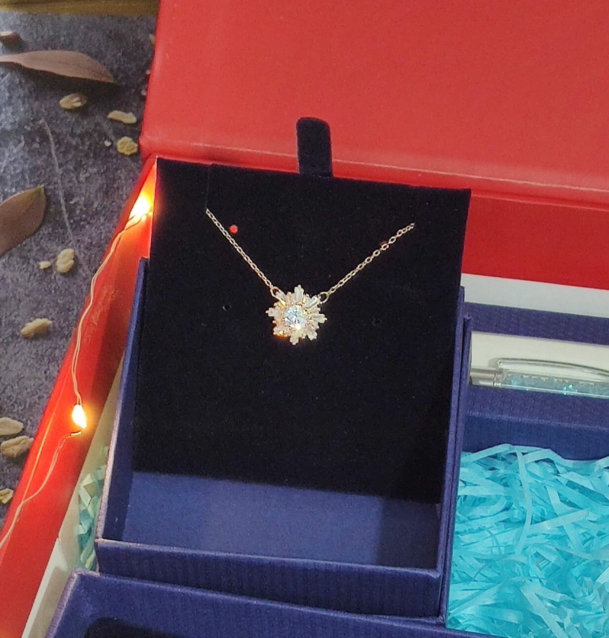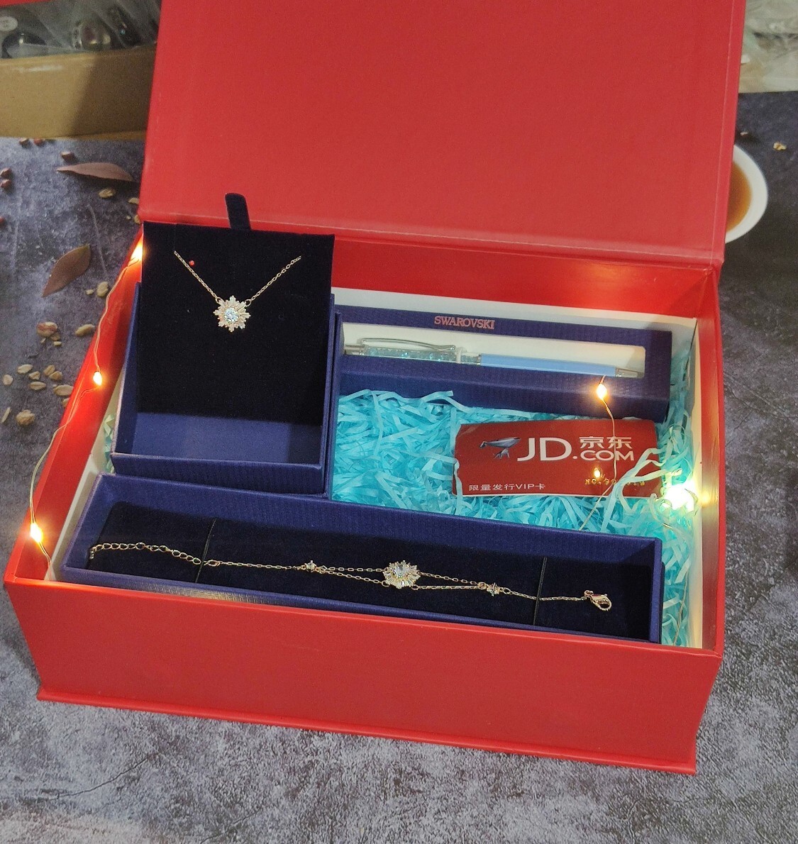 The **Swarovski Red Gift Set** stands out due to its combination of practicality and elegance. The pen is not only a functional writing instrument but also a stylish accessory. The jewelry box provides a secure and beautiful storage solution for precious items. This thoughtful combination makes it a versatile and cherished gift. The vibrant red color adds a touch of passion and excitement, making it a memorable and eye-catching present. Each item in the set is designed to complement the other, creating a harmonious and luxurious experience.