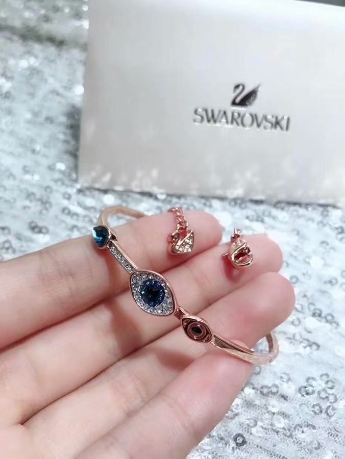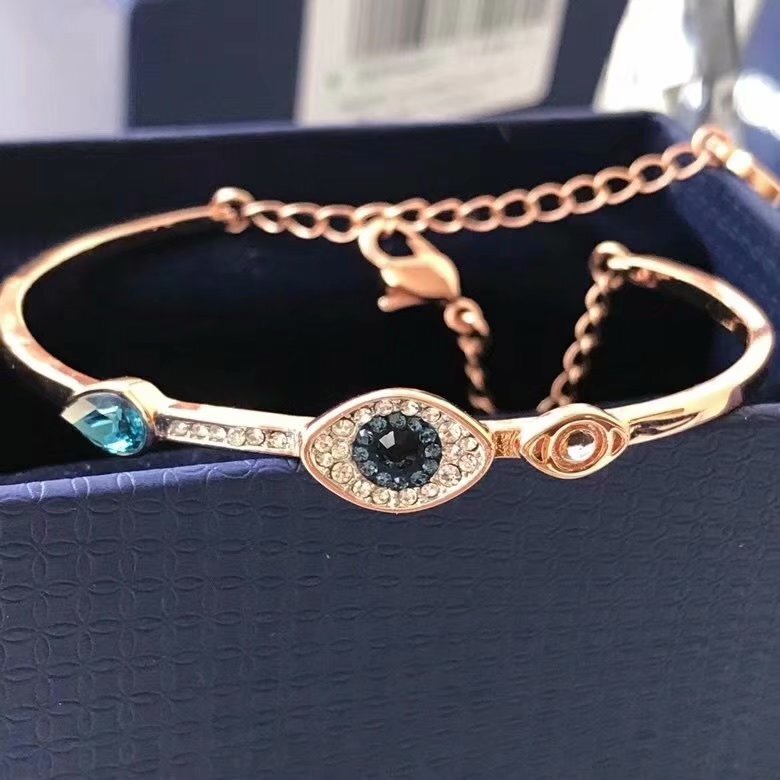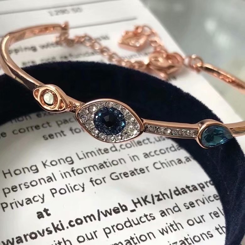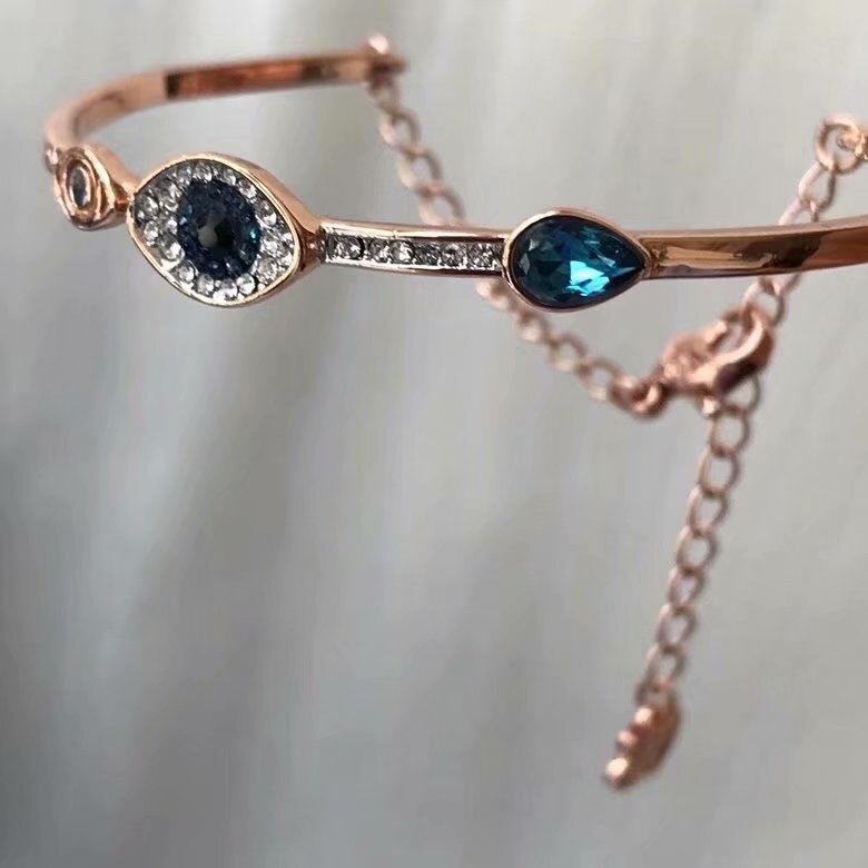 To maintain the brilliance of your Swarovski bracelet, avoid contact with harsh chemicals, perfumes, and lotions. Clean gently with a soft cloth and store in a jewelry box or pouch when not in use.