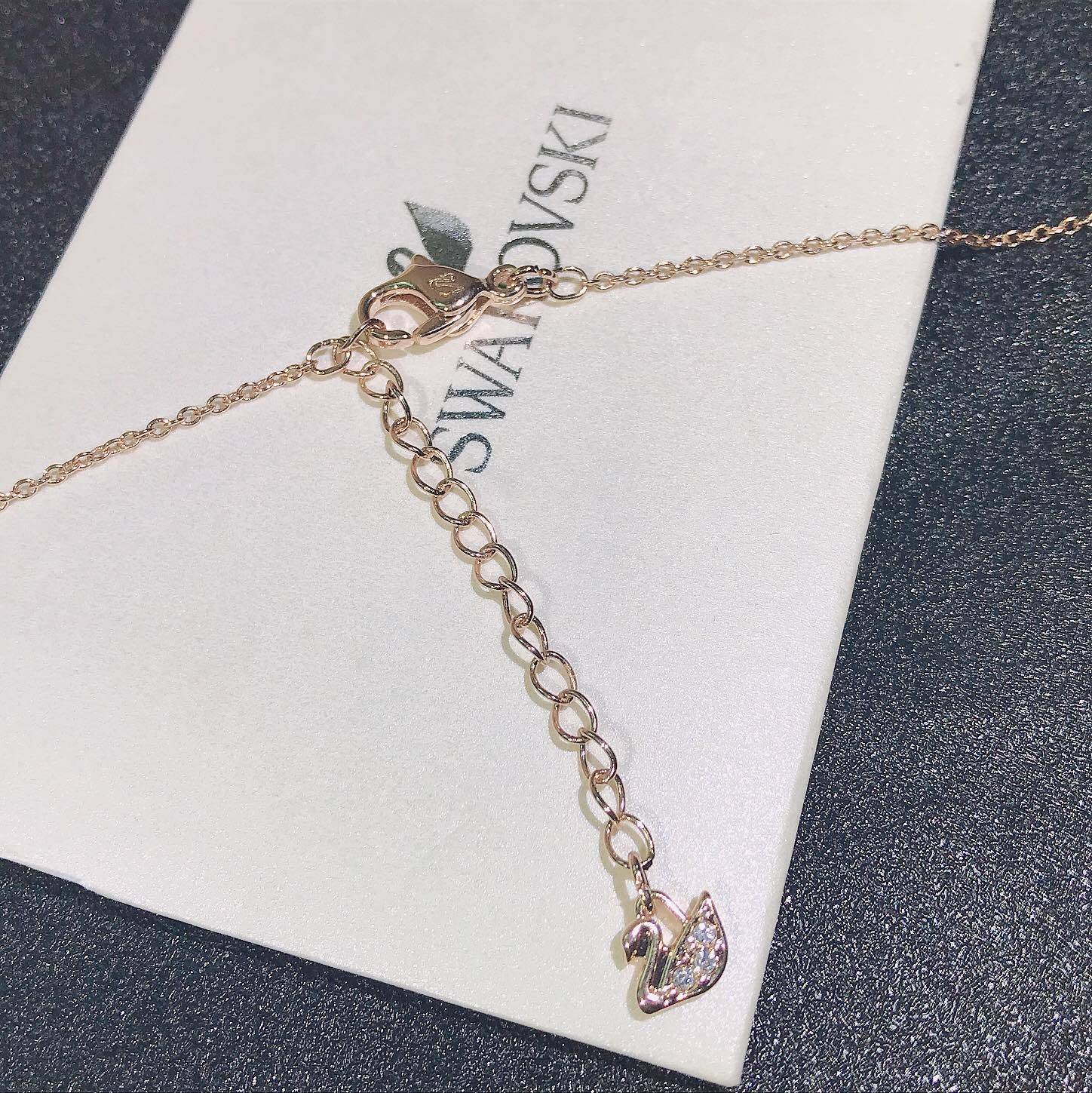 Swarovski's iconic swan logo is a symbol of elegance, grace, and quality. This logo is subtly incorporated into the design of the Swarovski Rose Gold Cat & Moon Necklace, serving as a mark of authenticity and craftsmanship. When you wear this necklace, you are not only wearing a beautiful piece of jewelry but also a symbol of the brand's commitment to excellence. The swan logo is a reminder of the brand's rich history and its dedication to creating timeless and elegant pieces.