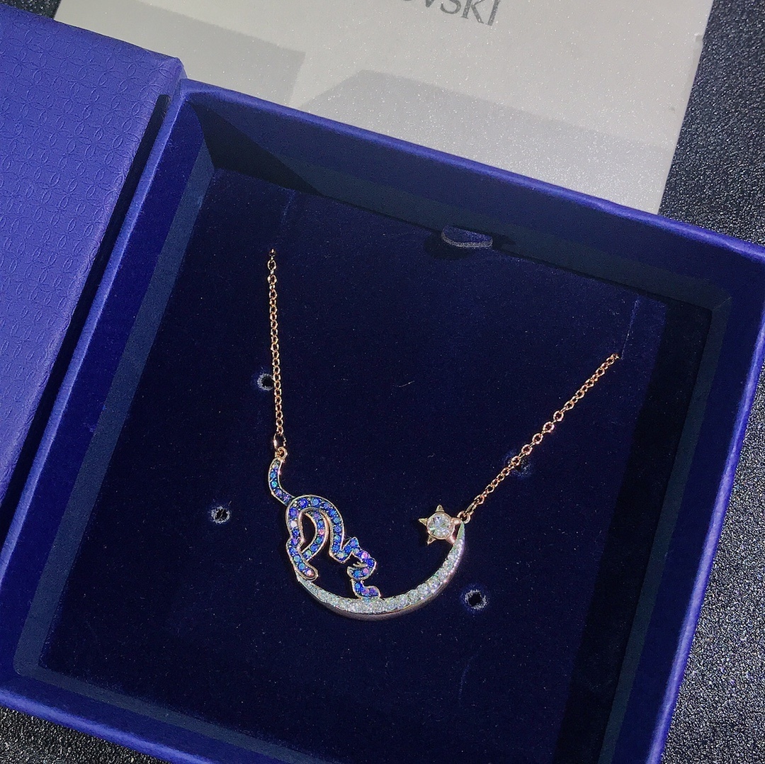 Swarovski jewelry is designed to last. The Swarovski Rose Gold Cat & Moon Necklace is crafted from high-quality materials to ensure durability and long-lasting beauty. The rose gold-tone plating is resistant to tarnishing, and the crystals are carefully set to prevent them from falling out. With proper care, this necklace will remain a cherished piece in your jewelry collection for years to come.