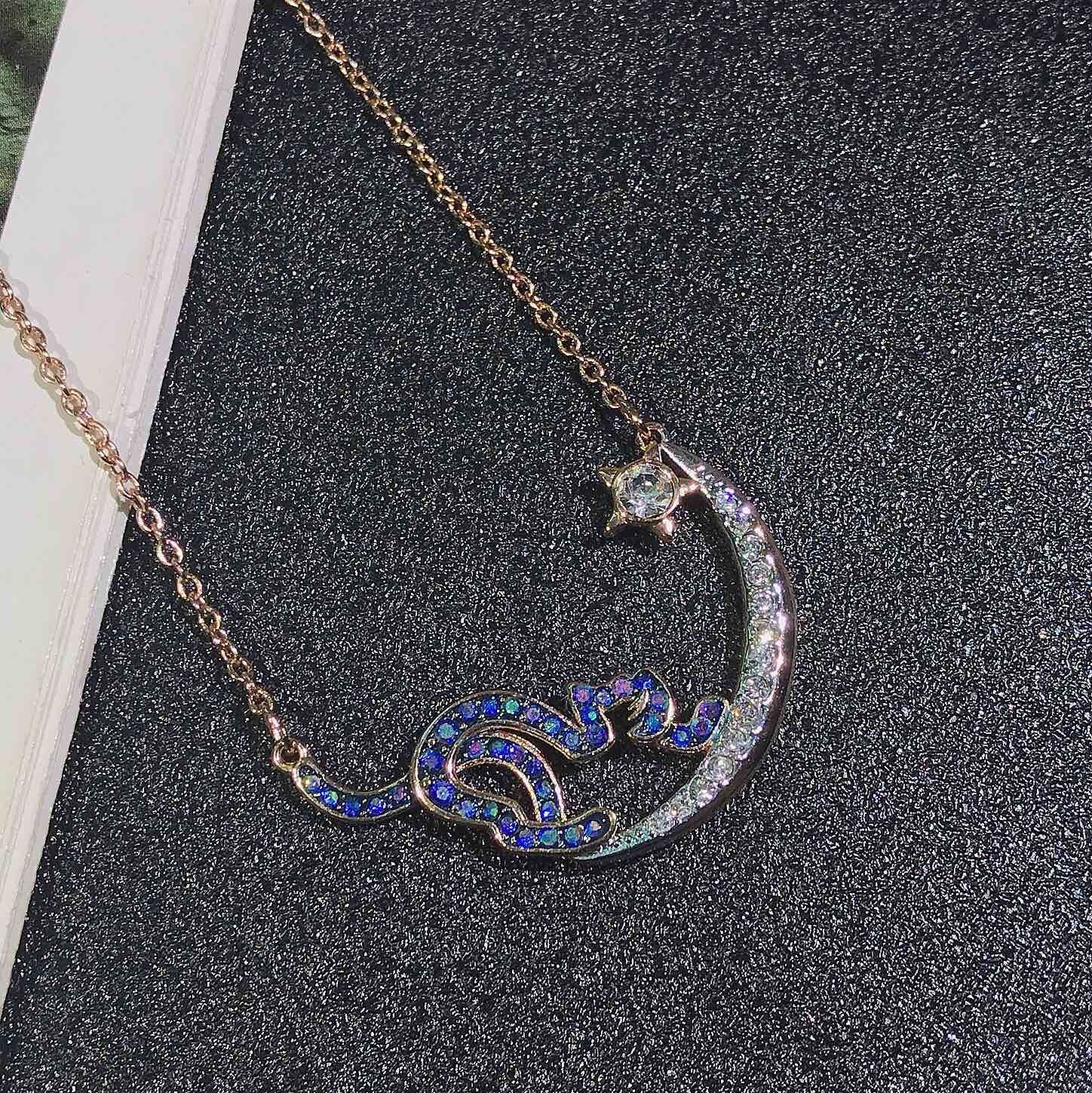 - Introducing the Swarovski Rose Gold Cat & Moon Necklace