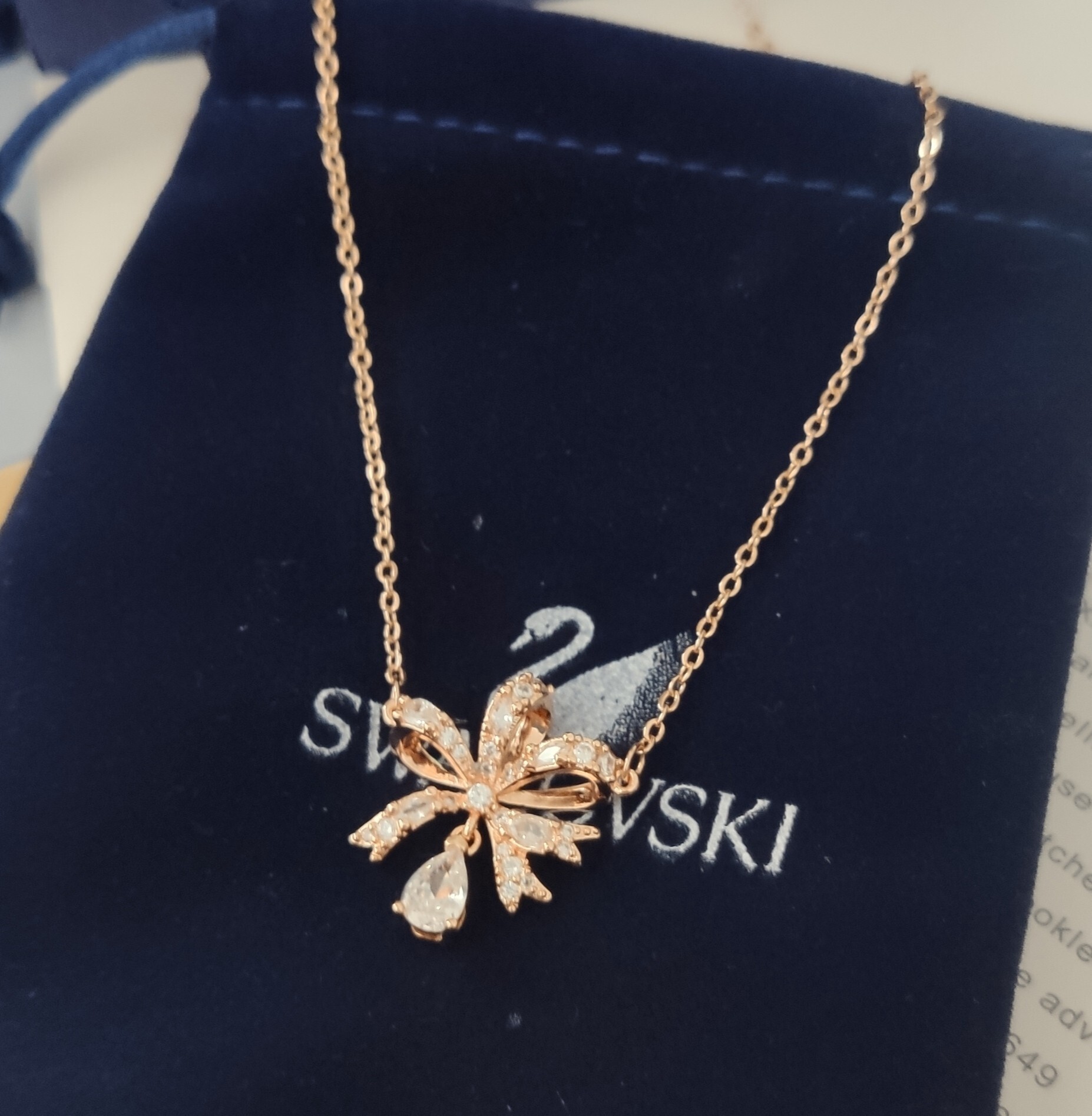 - How to Care for Your Swarovski Rose Gold Ribbon Pendant Necklace