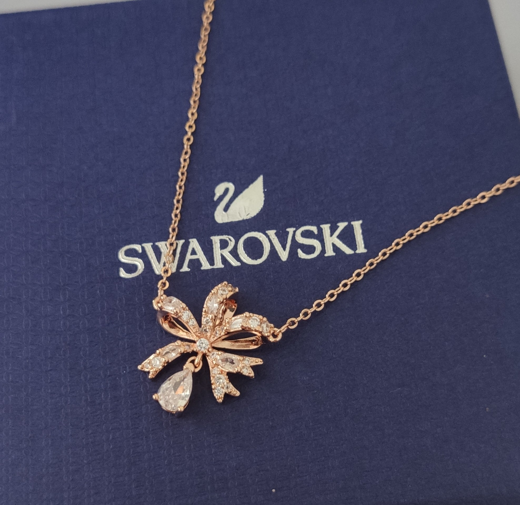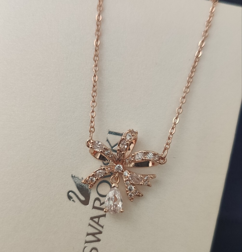 - Introducing the Swarovski Rose Gold Ribbon Pendant Necklace