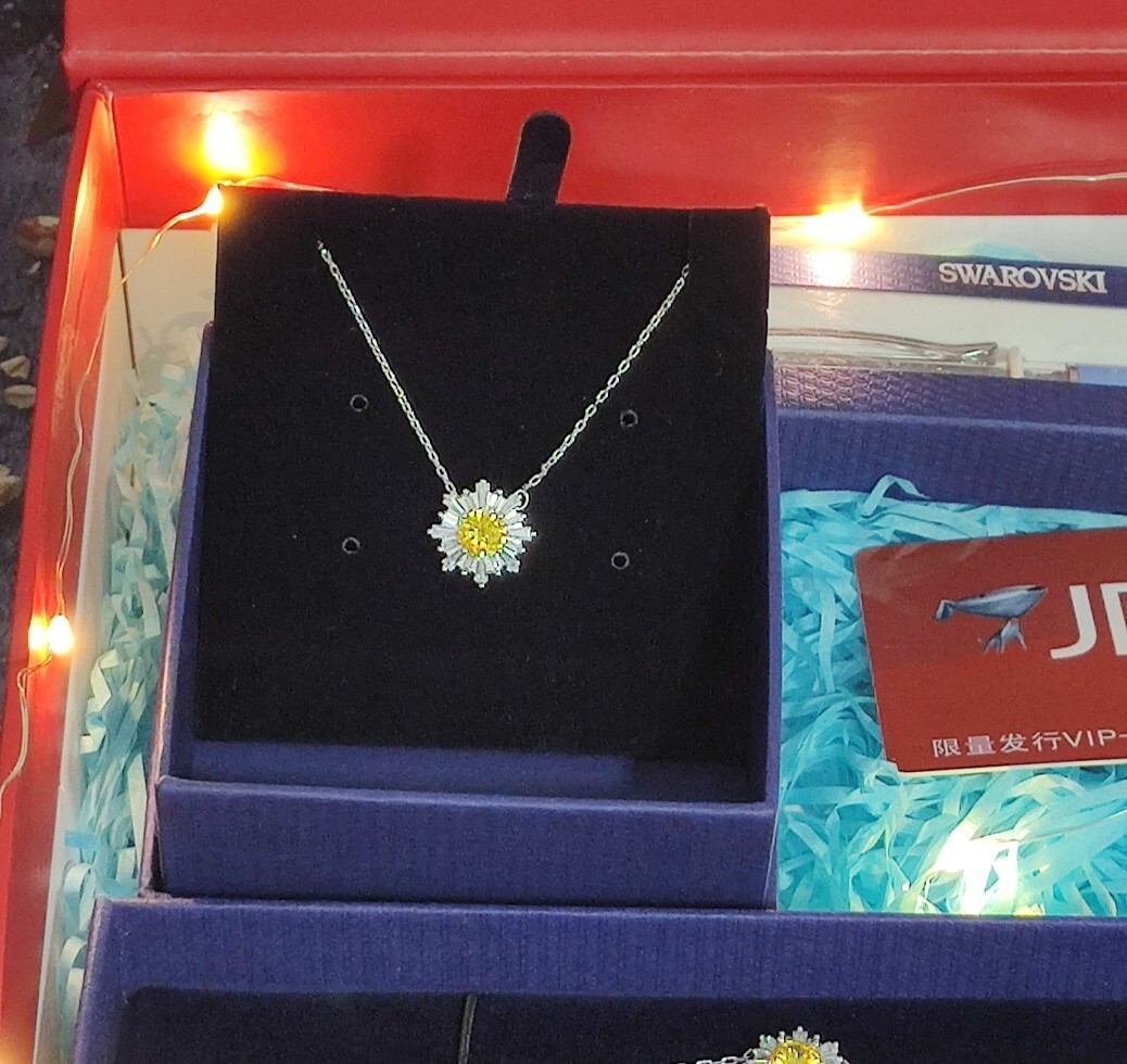 The necklace chain is designed to be both delicate and strong, ensuring a comfortable fit and preventing breakage. The bracelet features an adjustable clasp, allowing you to customize the fit to your wrist size. The attention to detail in the design and construction of the Swarovski Silver Sunflower Set is evident in every aspect, from the precision of the crystal settings to the smoothness of the finish.