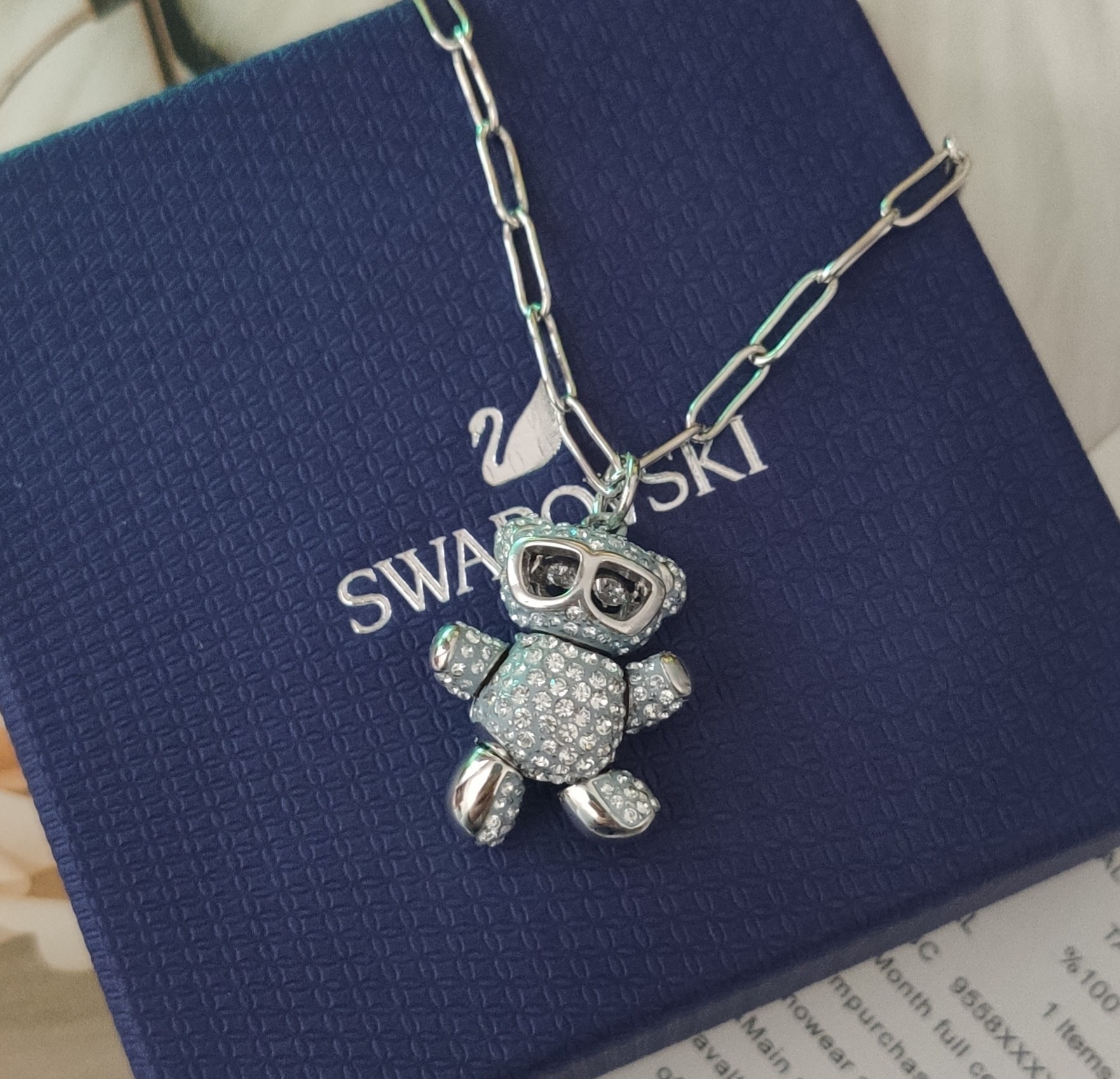 To ensure that your Swarovski Silver Teddy Bear Pendant remains in pristine condition, proper care is essential. Avoid exposing the pendant to harsh chemicals, such as chlorine or household cleaners, as these can damage the crystals and the silver-tone finish. When not in use, store the pendant in a soft pouch or jewelry box to prevent scratches and tarnishing.