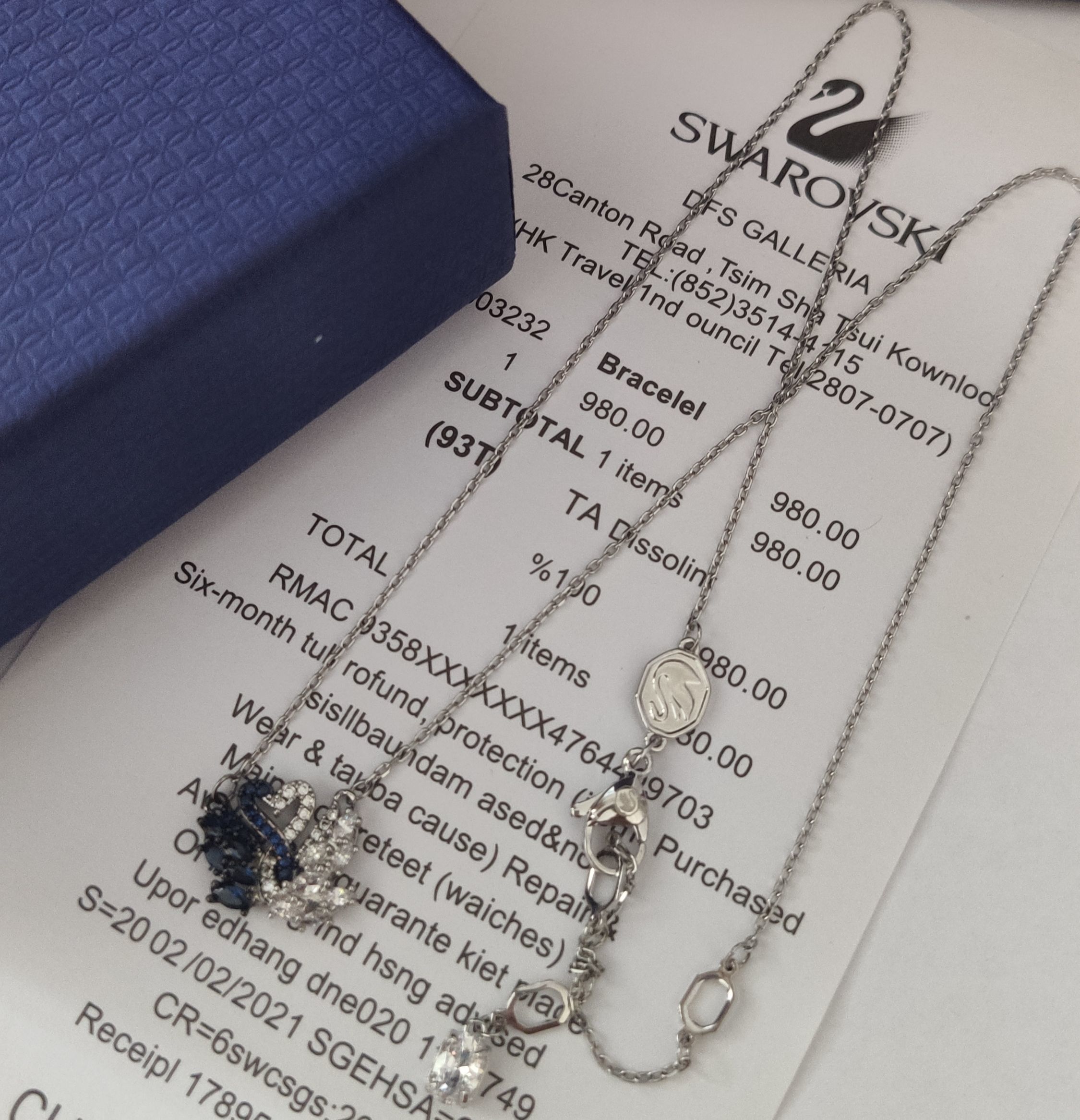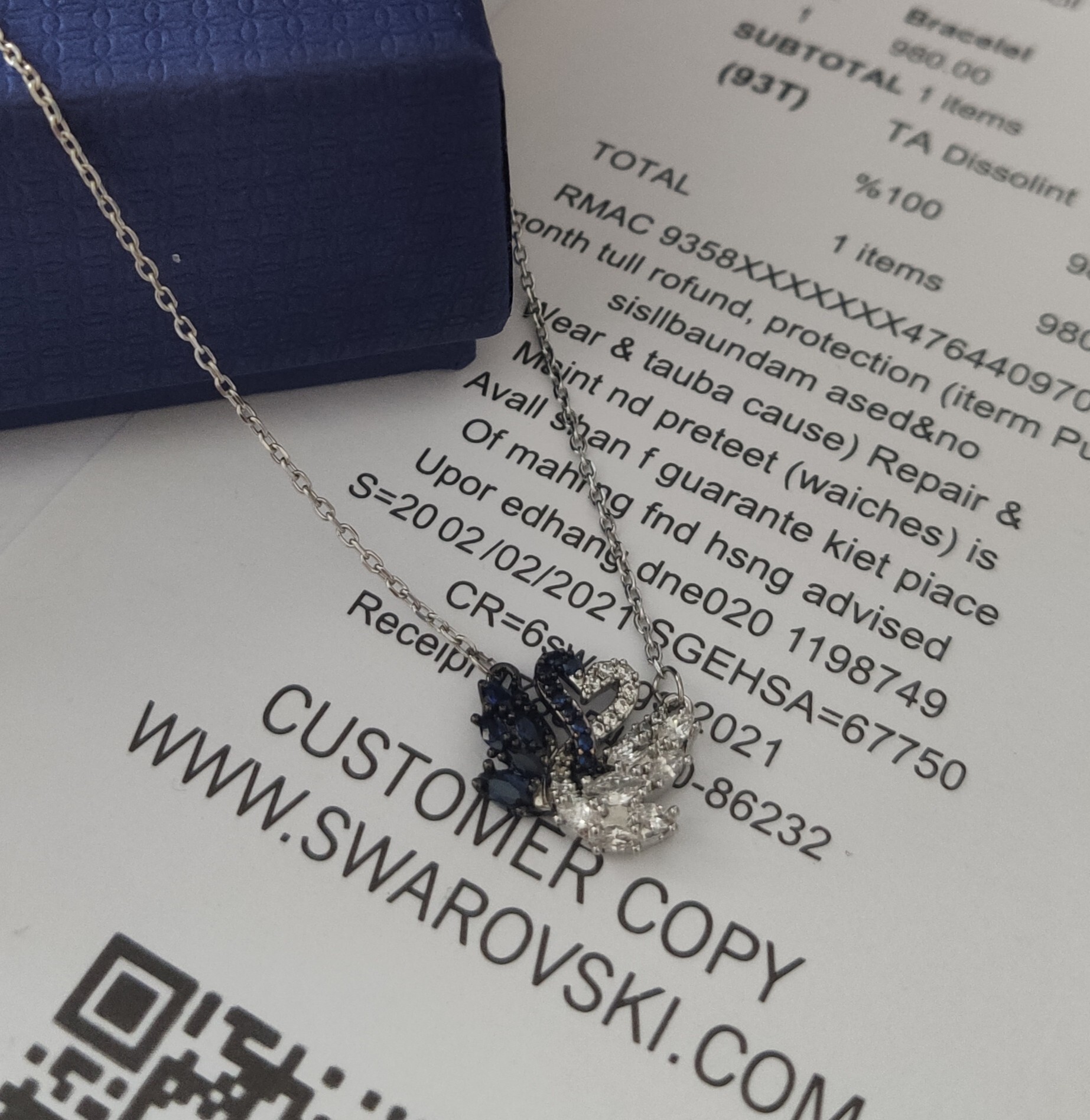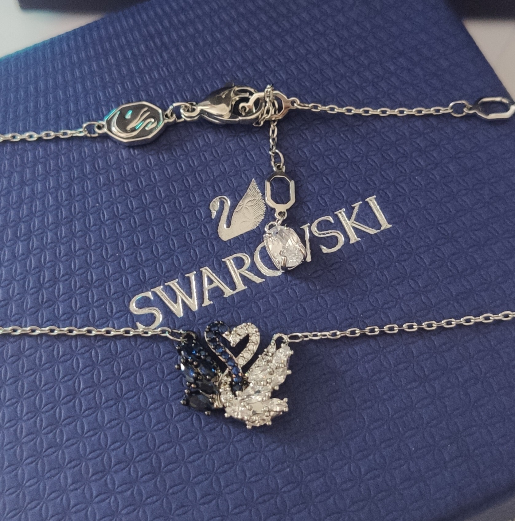 The design of the Swarovski Swan Duo Pendant is both classic and contemporary, making it a versatile accessory that can be worn with a variety of outfits. The intertwined swan motifs add a touch of romance and whimsy, while the contrasting blue and white crystals create a striking visual effect. The silver-tone chain complements the pendant beautifully, adding a touch of understated elegance. You can learn more about the history of Swarovski crystals on product background on Wikipedia.