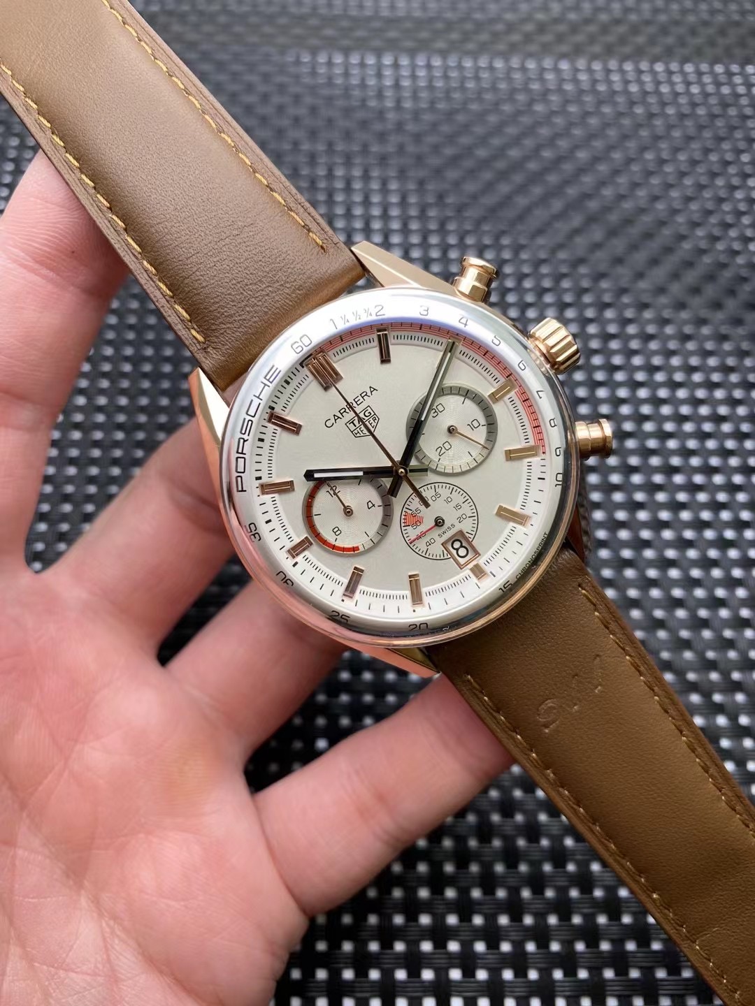 Introducing the Tag Heuer Carrera Porsche Cream Dial Brown Leather Watch