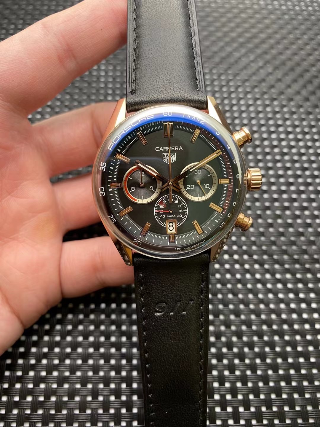 Introducing the TAG Heuer Carrera Porsche Black Leather Rose Gold Watch