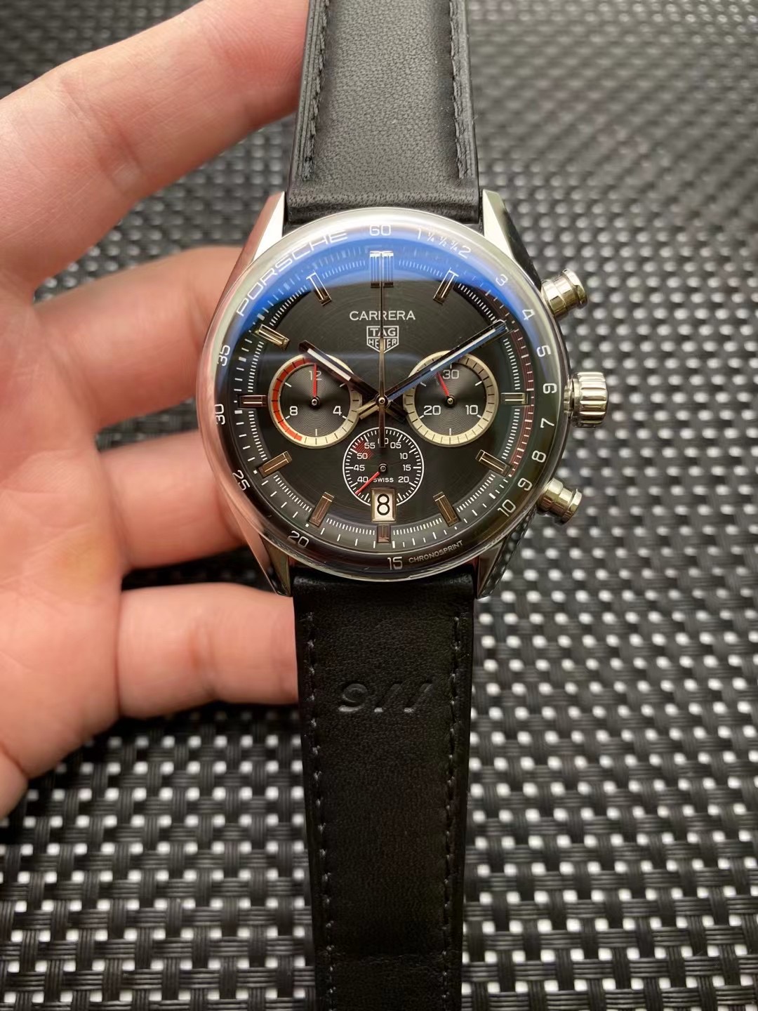 For the automatic movement, it is recommended to wear the watch regularly to keep it wound. If the watch is not worn for an extended period, you may need to manually wind it before wearing it again. It's also advisable to have the watch serviced by a qualified technician every few years to ensure that the movement is properly lubricated and functioning correctly. Proper care and maintenance will help to preserve the beauty and value of your TAG Heuer Carrera Porsche Black Leather Rose Gold Watch for years to come.