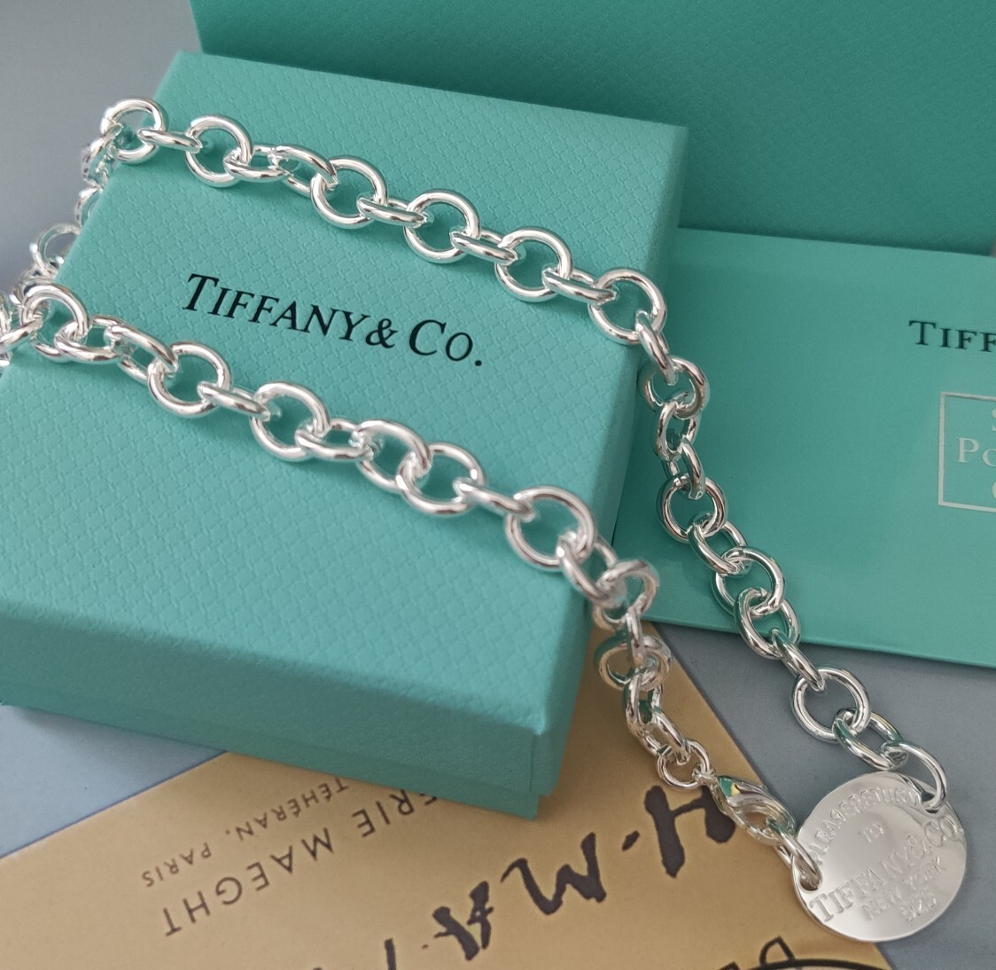 Store the necklace in a dry and airtight container or pouch to prevent tarnishing. It's also a good idea to keep it separate from other jewelry to avoid scratches. With proper care, your Tiffany Silver Round Tag Chain Necklace will retain its luster and beauty for years to come.
