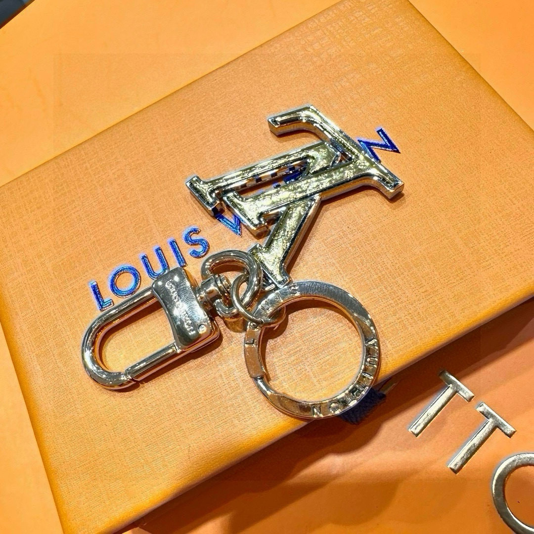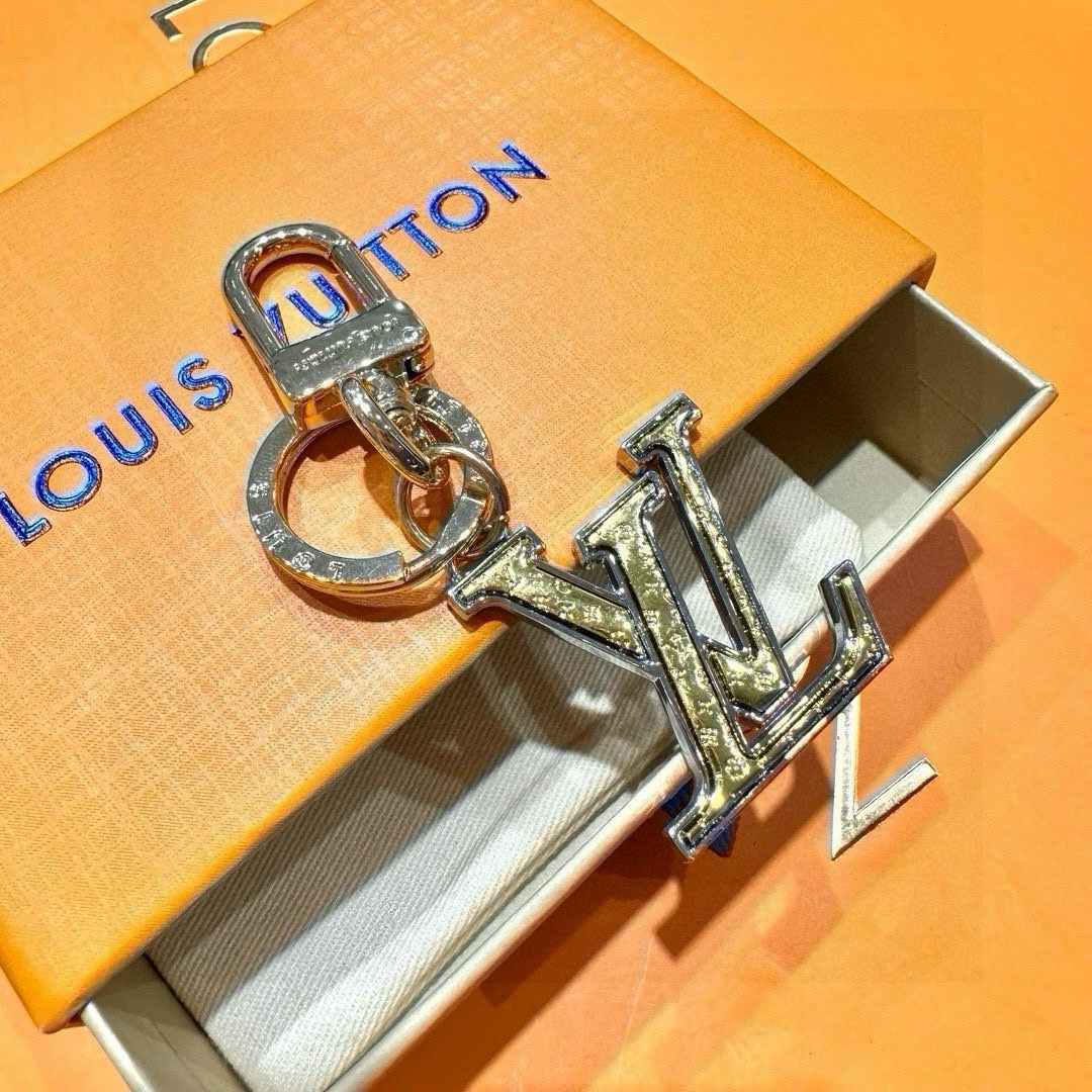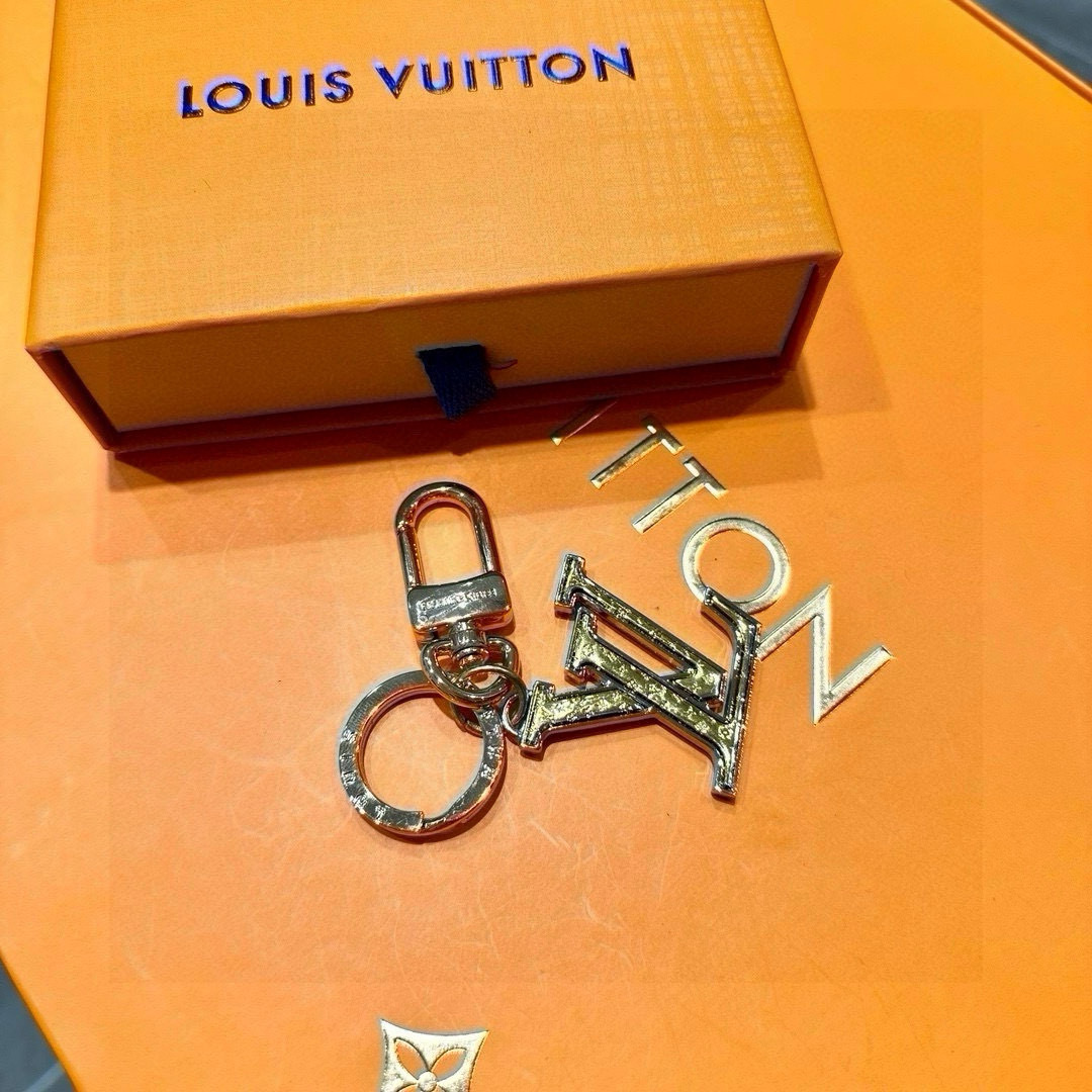 The LV initials are intricately designed and perfectly balanced, showcasing the brand's iconic logo in a subtle yet recognizable way. The sturdy clasp ensures that your keys or accessories are securely attached, providing peace of mind while you're on the go. The keychain is also lightweight, making it easy to carry without adding unnecessary bulk.