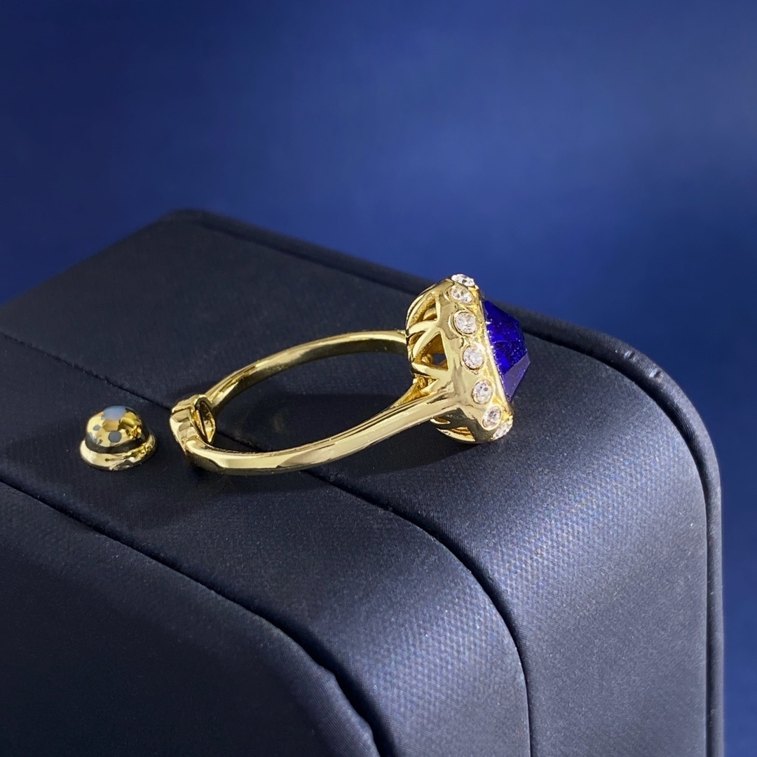 - Valentino Gold Ring Blue Sapphire designer statement Features