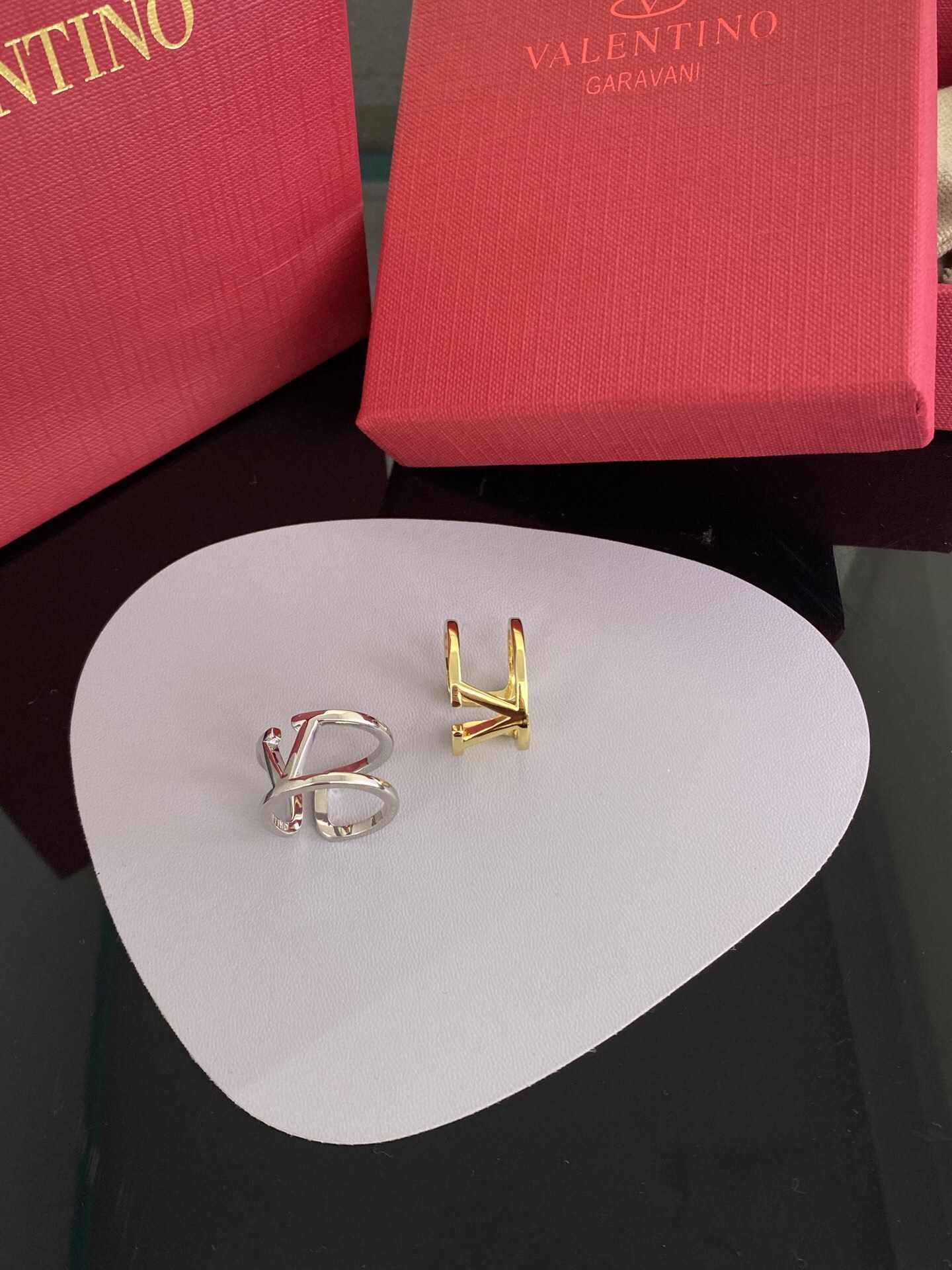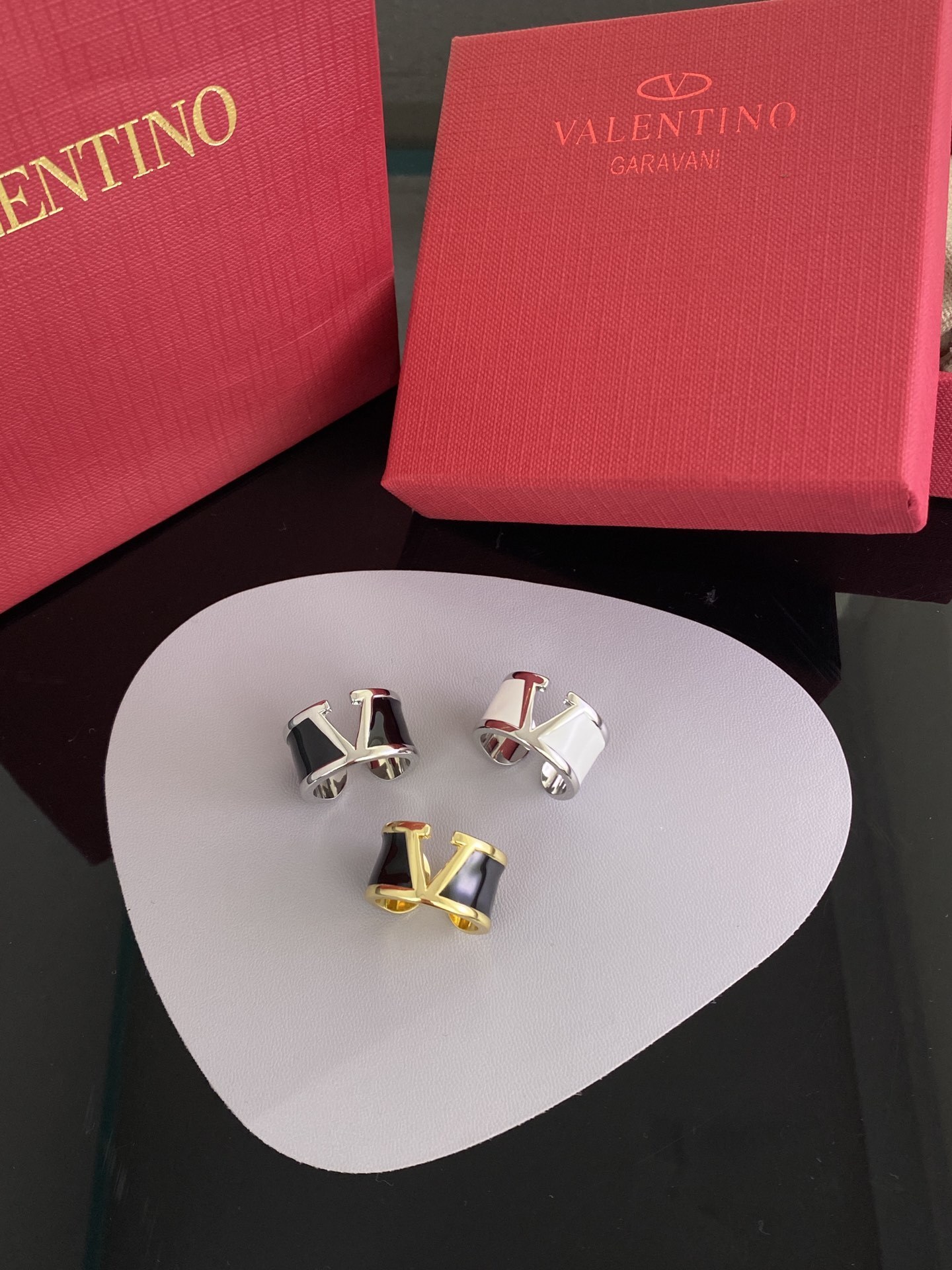 When not in use, store your Valentino Garavani VLogo Signature Rings in a jewelry box or pouch to protect them from scratches and tarnish. Avoid storing the rings in direct sunlight or humid environments, as this can cause discoloration or damage. With proper care, your Valentino Garavani VLogo Signature Rings will continue to shine and make a statement for years to come.