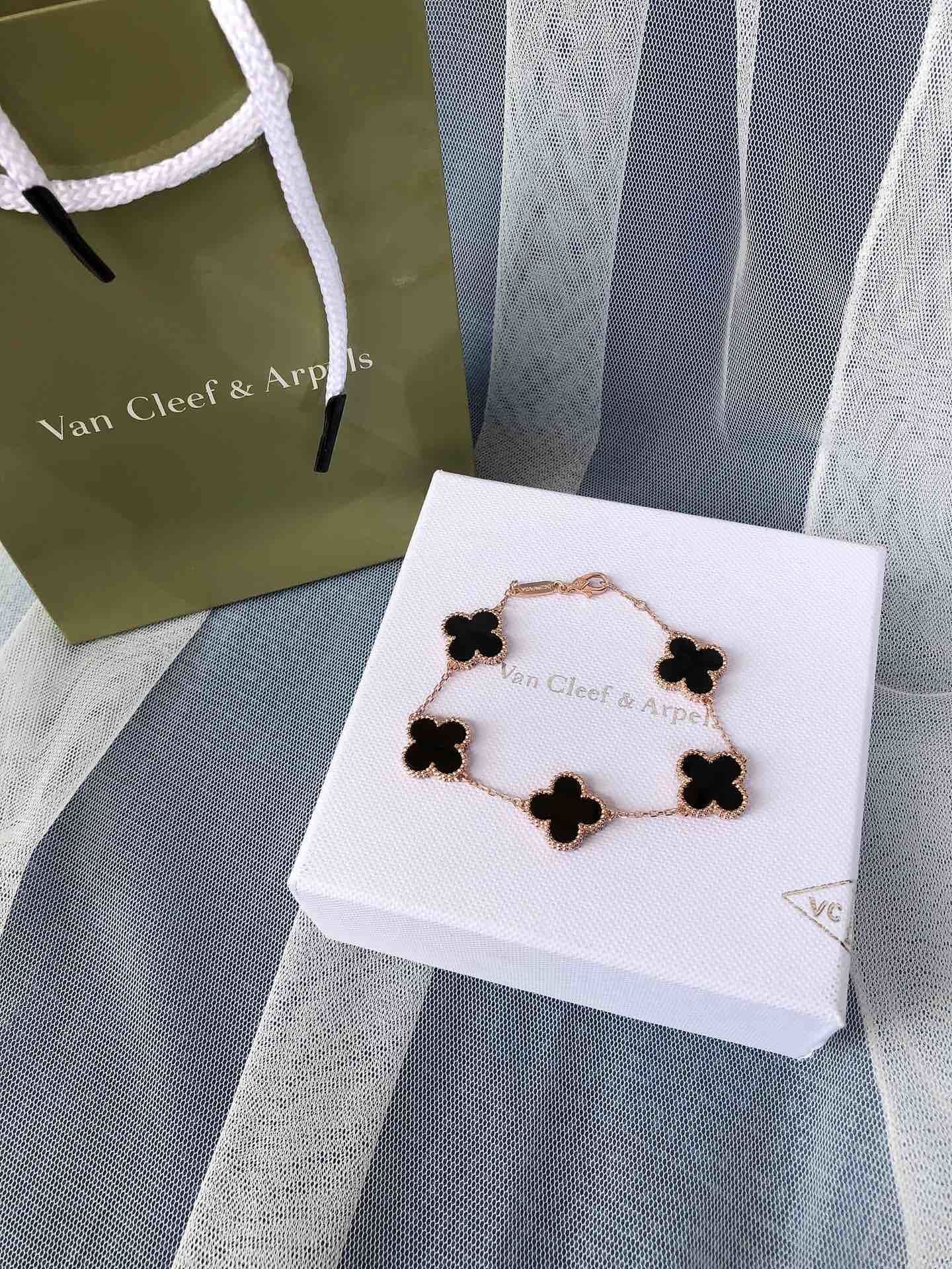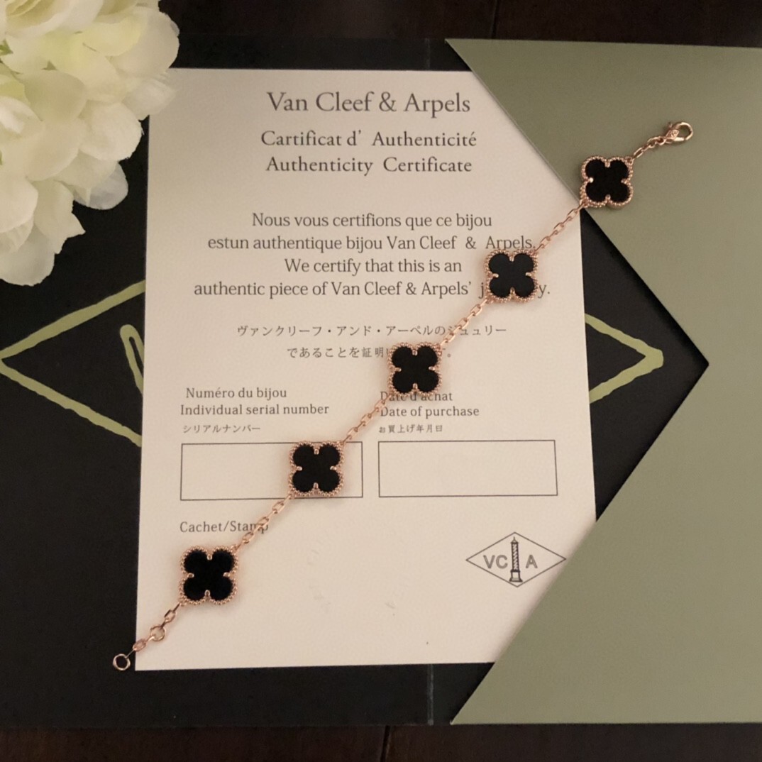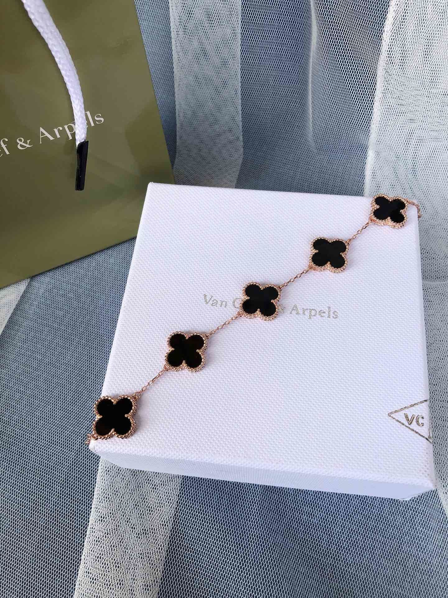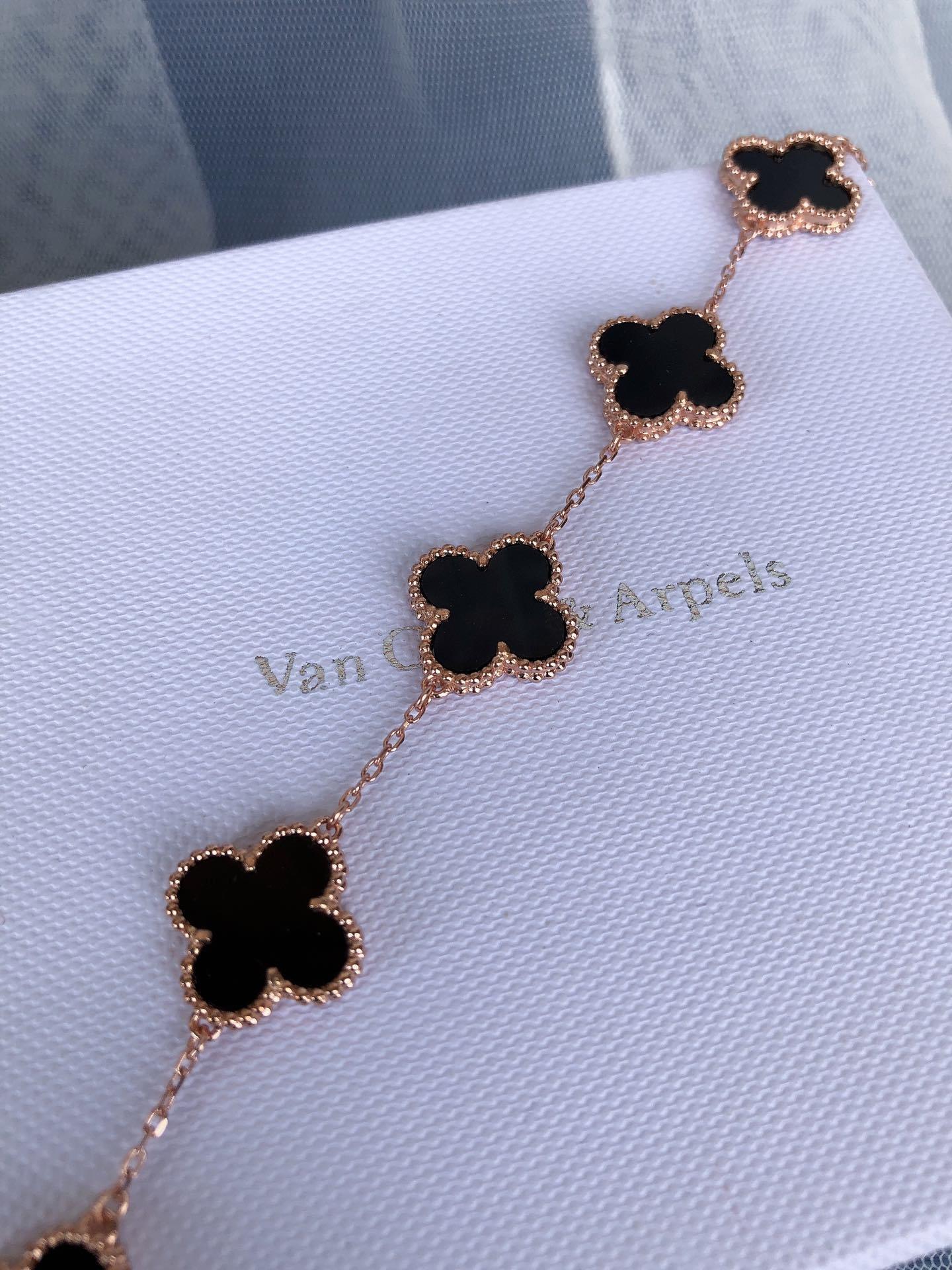 - Iconic Alhambra Motif: Five delicate Alhambra charms adorned with captivating black onyx.