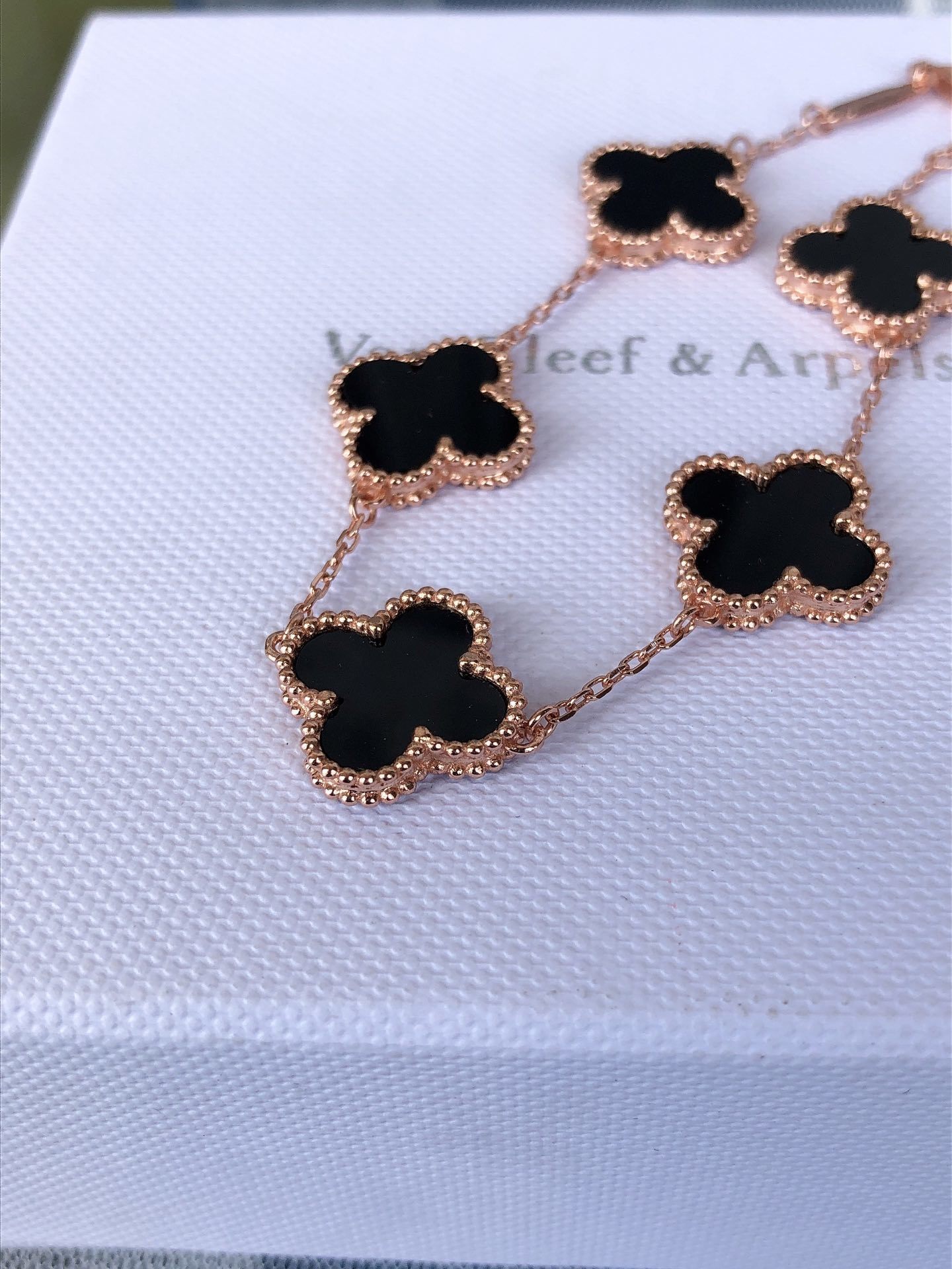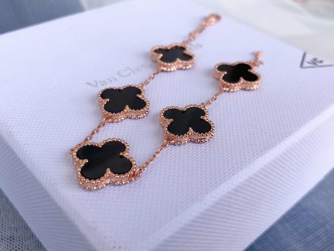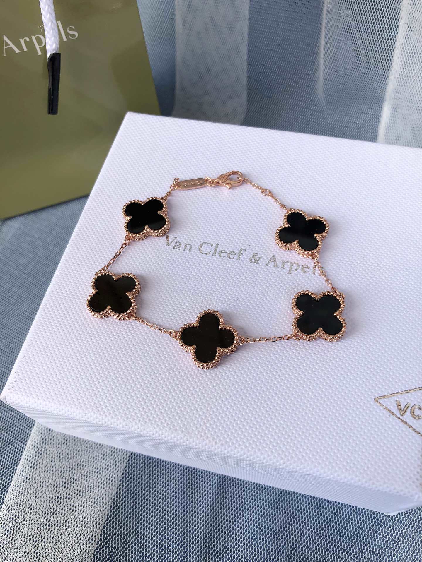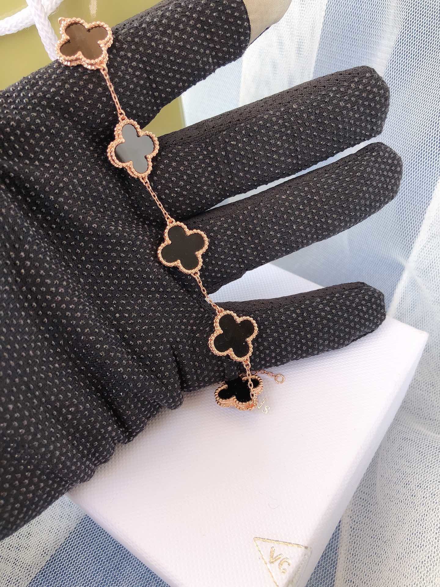- Iconic Alhambra Motif: Five delicate Alhambra charms adorned with captivating black onyx.