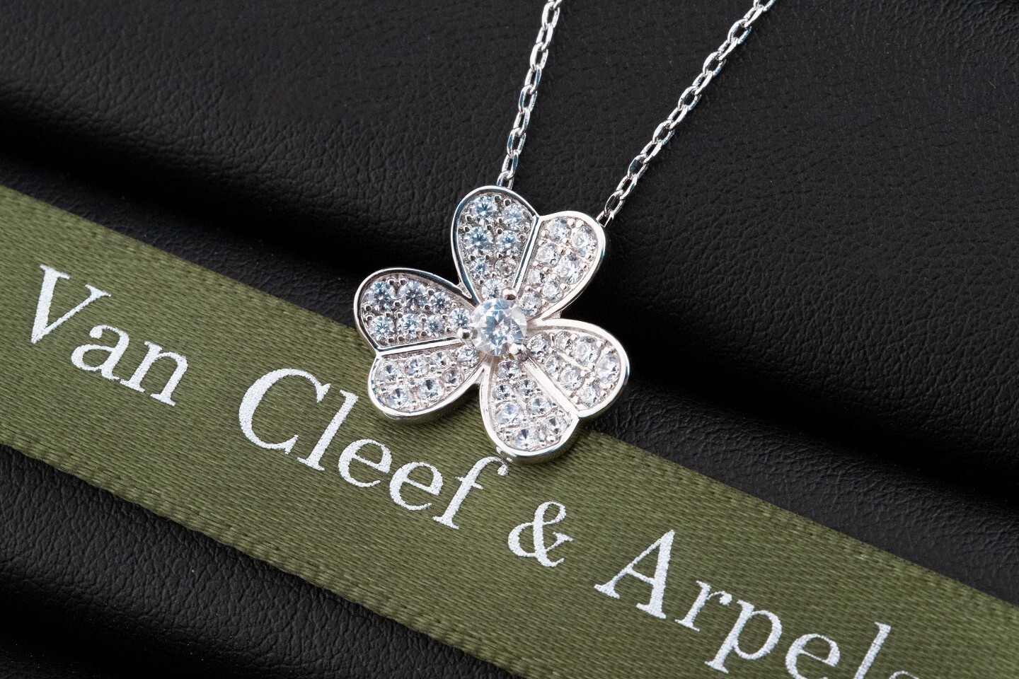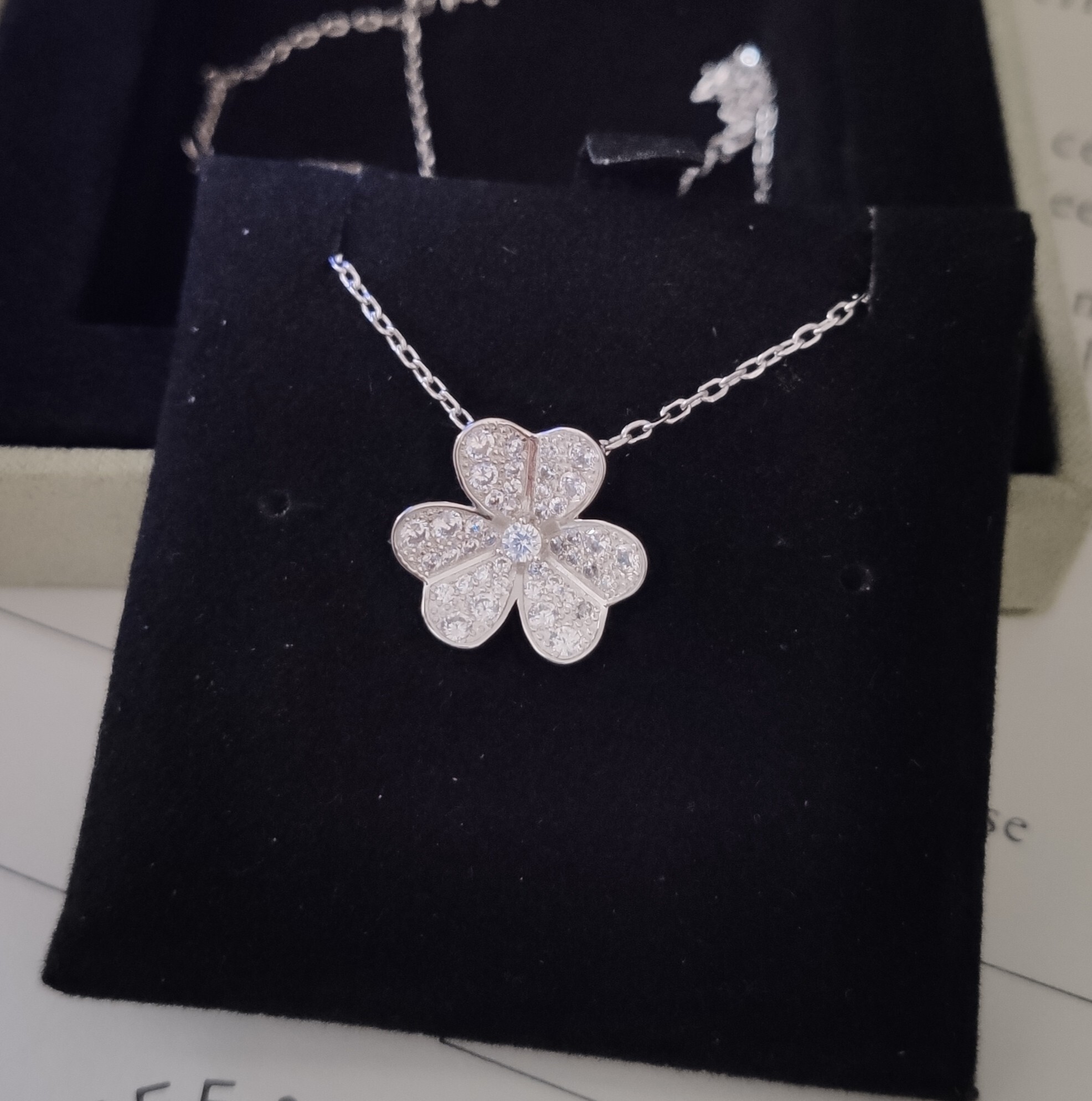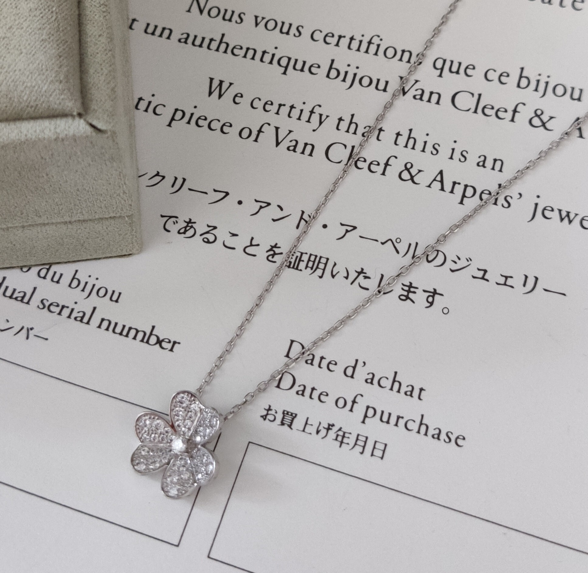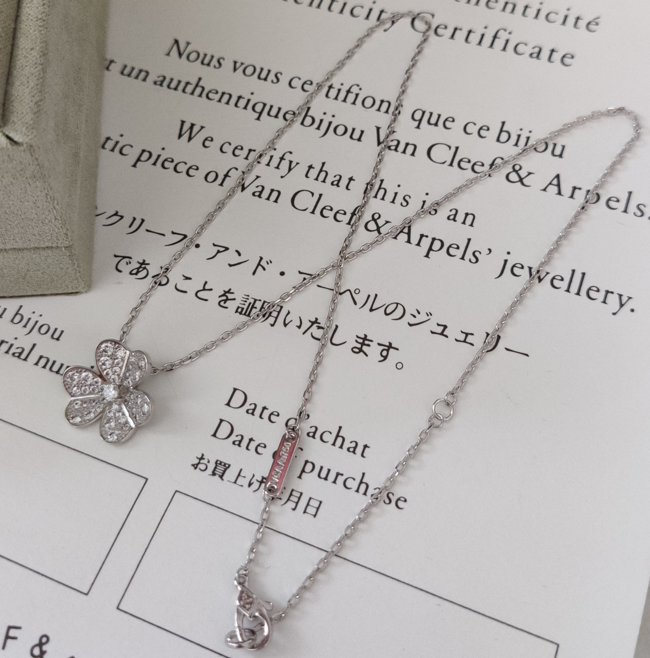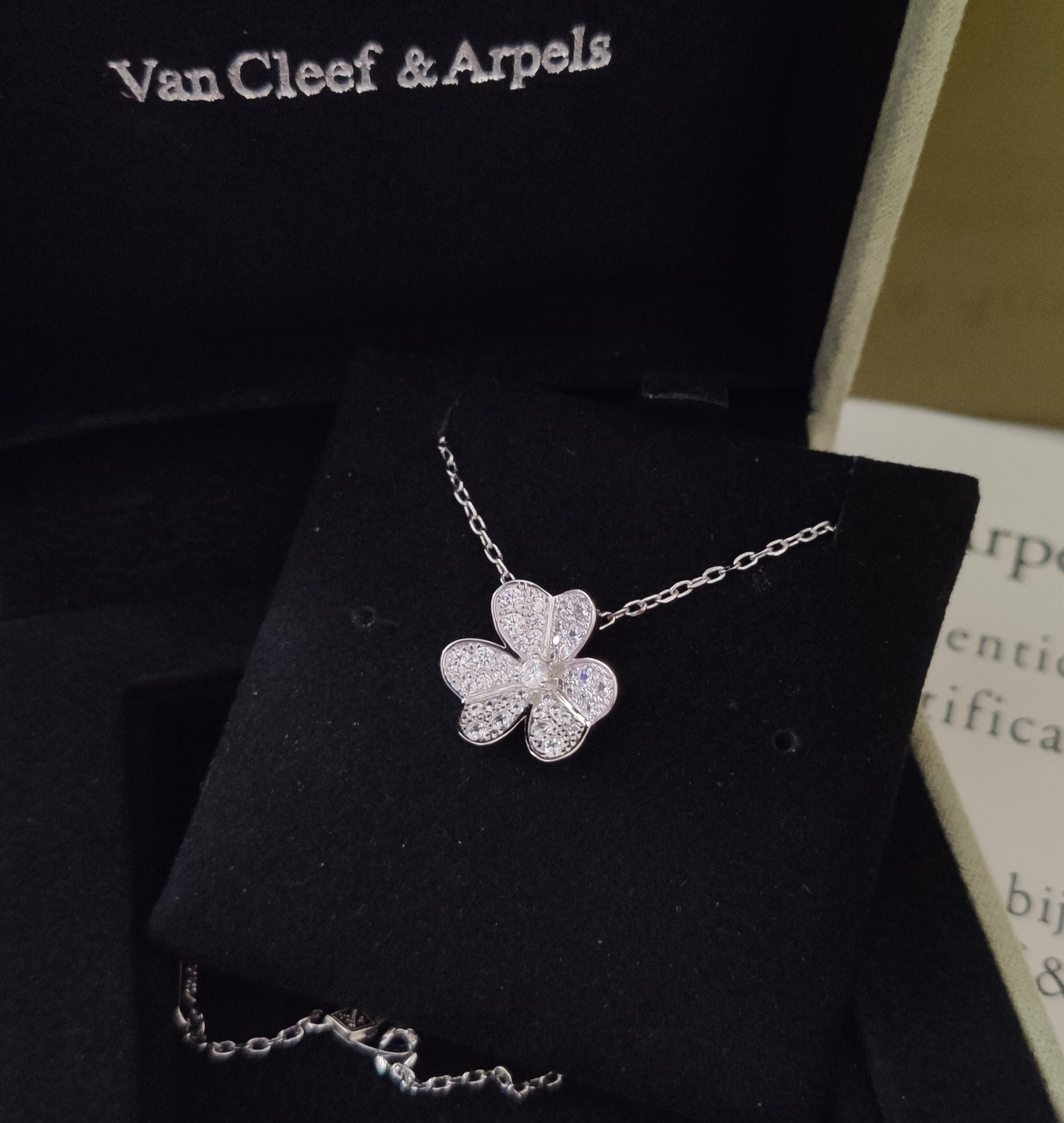 Instructions for Proper Care of Your Van Cleef & Arpels Silver Diamond Clover Pendant Necklace