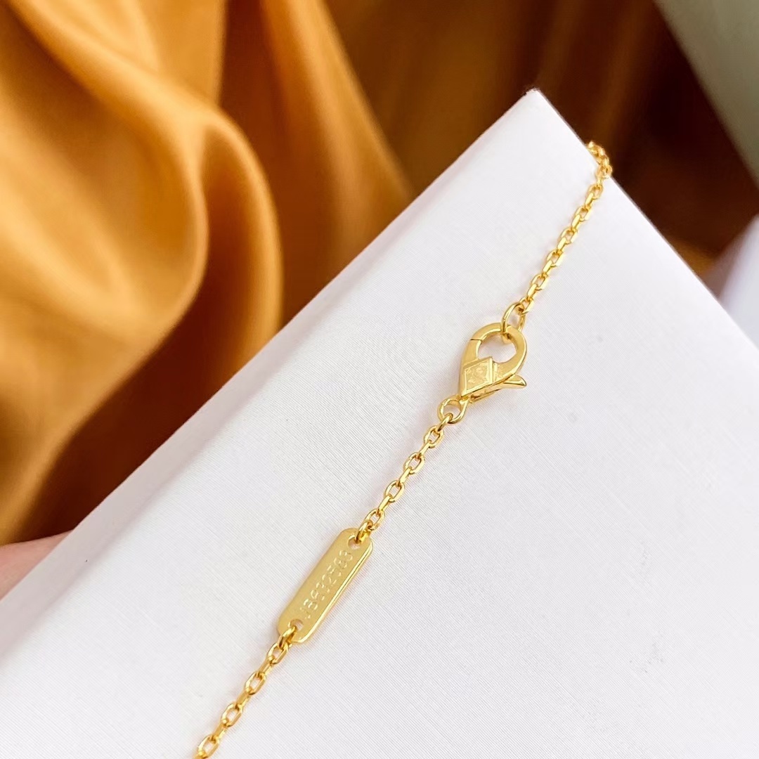 To ensure that your Van Cleef Black Onyx Clover Necklace retains its beauty and luster, it is important to follow a few simple care guidelines. Avoid exposing the necklace to harsh chemicals, such as chlorine or household cleaners, as these can damage the onyx and gold. When cleaning the necklace, use a soft cloth and mild soap to gently wipe away any dirt or residue. Store the necklace in a jewelry box or pouch when not in use to protect it from scratches and other damage. With proper care, your Van Cleef Black Onyx Clover Necklace will continue to be a cherished piece of jewelry for many years to come.